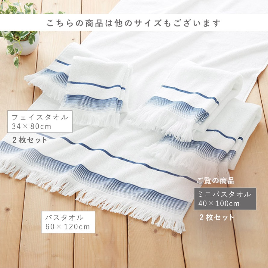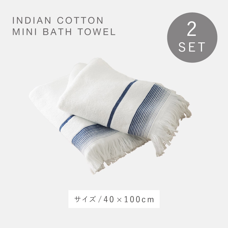 ミニバスタオル 40×100cm 2枚組 バスタオル 小さめ タオル 綿100% インド綿 厚手 おしゃれ インド綿フリンジがお洒落なミニバスタオル2枚組