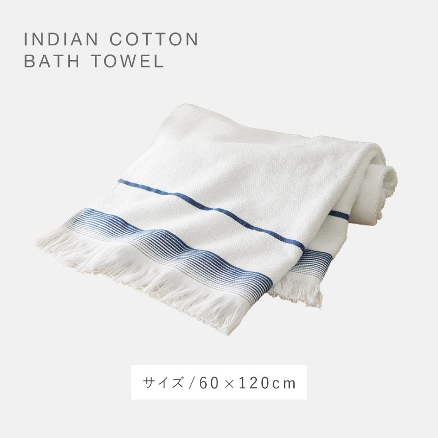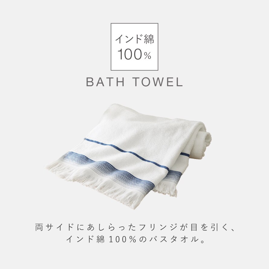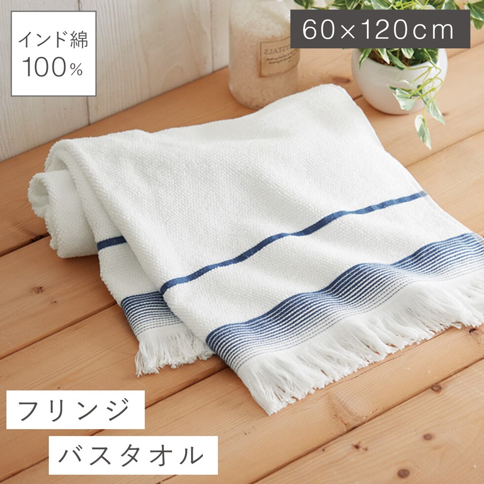 バスタオル 70×140cm タオル 綿100% インド綿 厚手 おしゃれ インド綿フリンジがお洒落なバスタオル