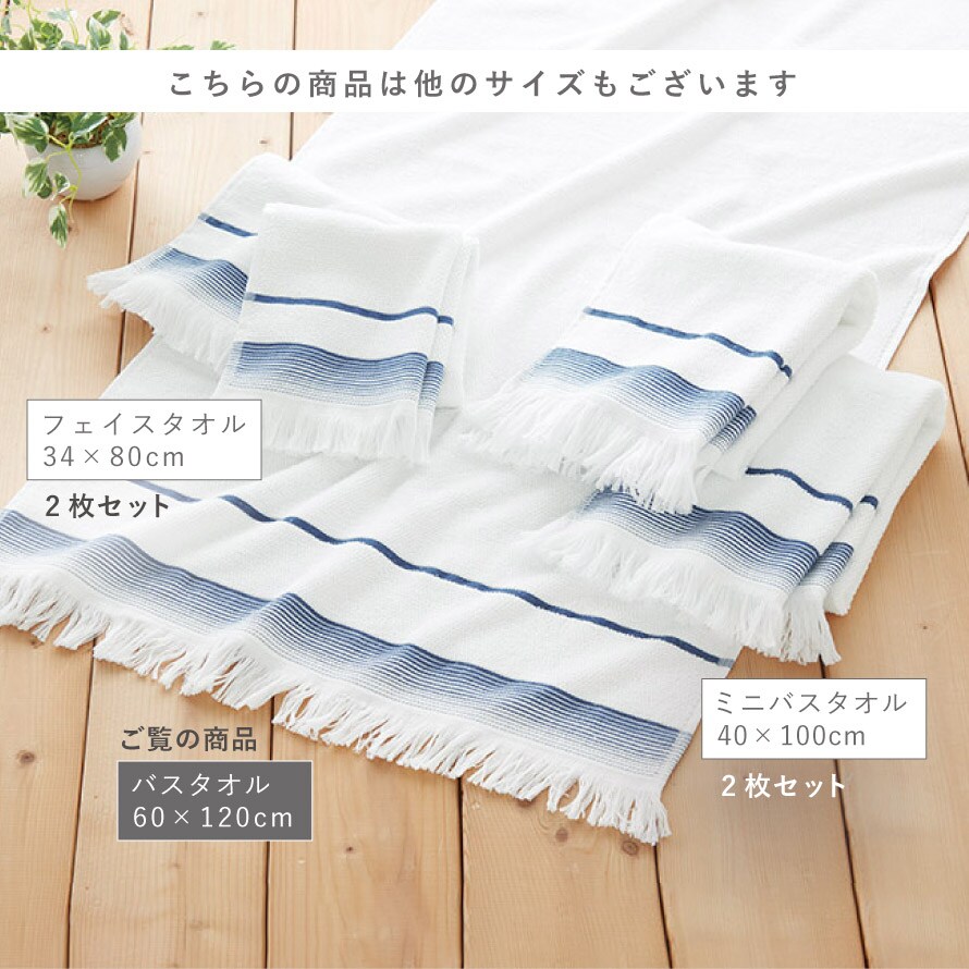 こちらのタオルは別サイズ(フェイスタオル、ミニバスタオル)もございます。シリーズで揃えて統一感のあるインテリアに。