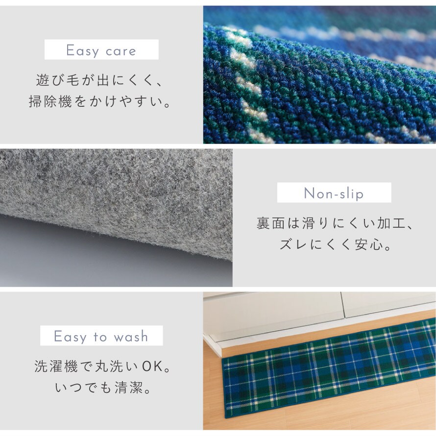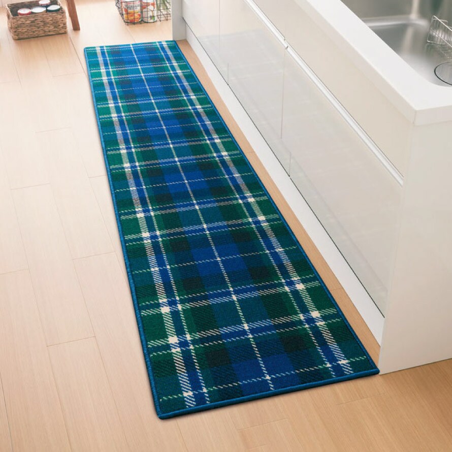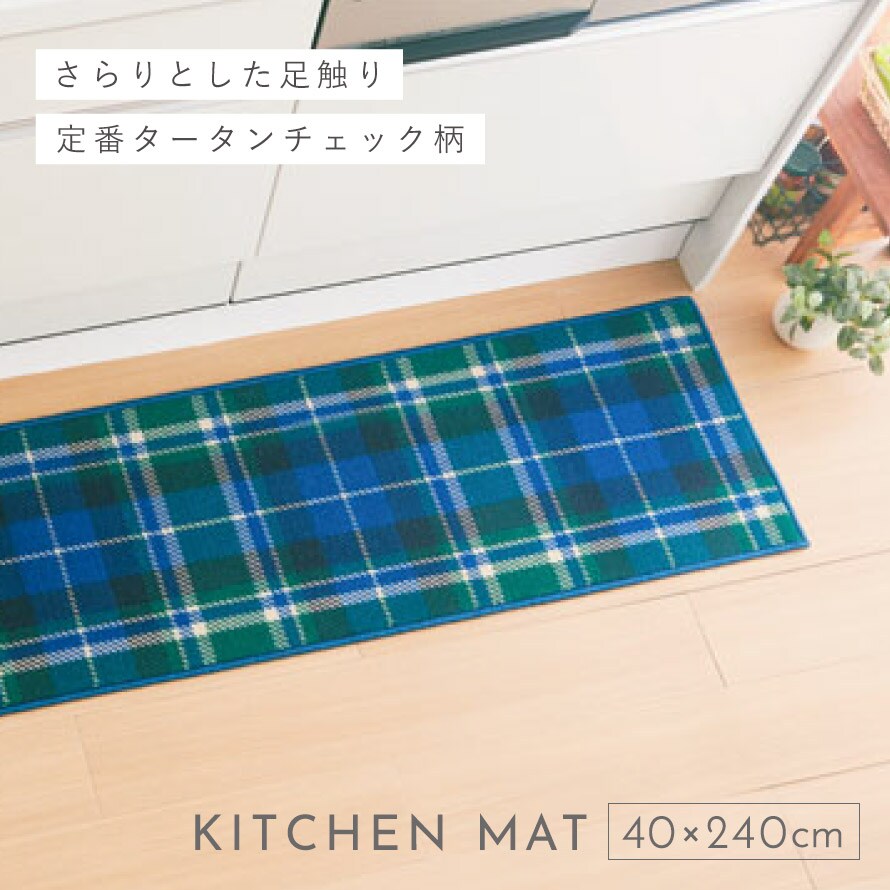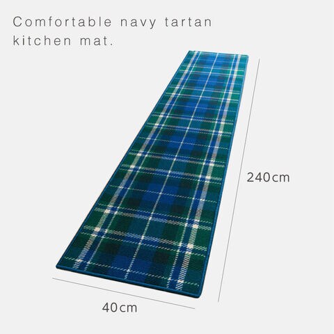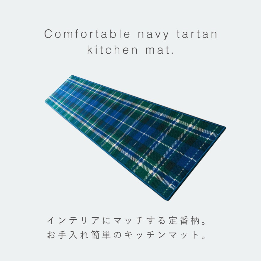 キッチンマット 240×40cm おしゃれ 洗える 滑り止め ずれない キッチンマット タータンチェックネイビー 240cm