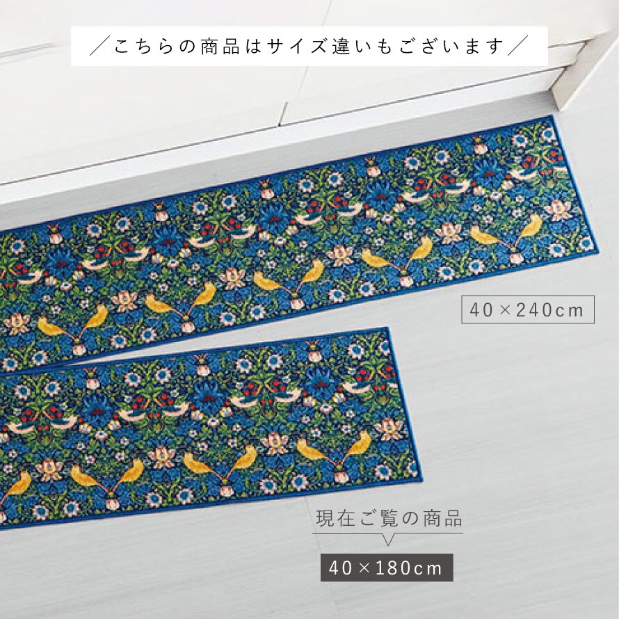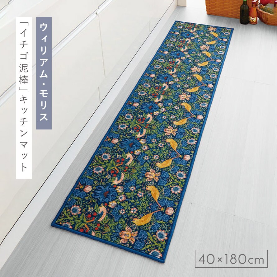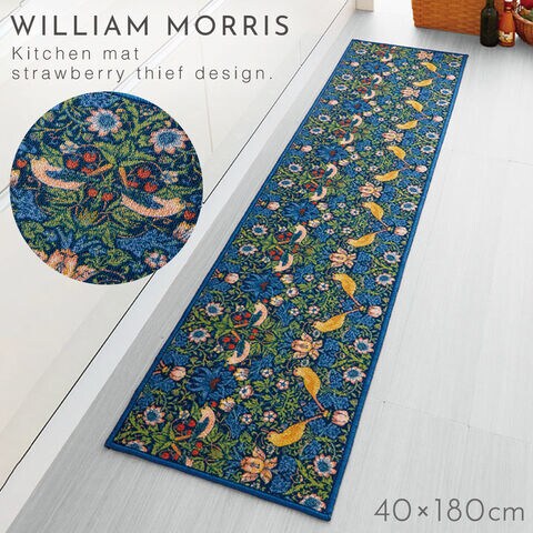 キッチンマット 180×40cm いちご泥棒 ウィリアムモリス 北欧 おしゃれ 洗える 滑り止め ずれない キッチンマット モリスいちご泥棒
