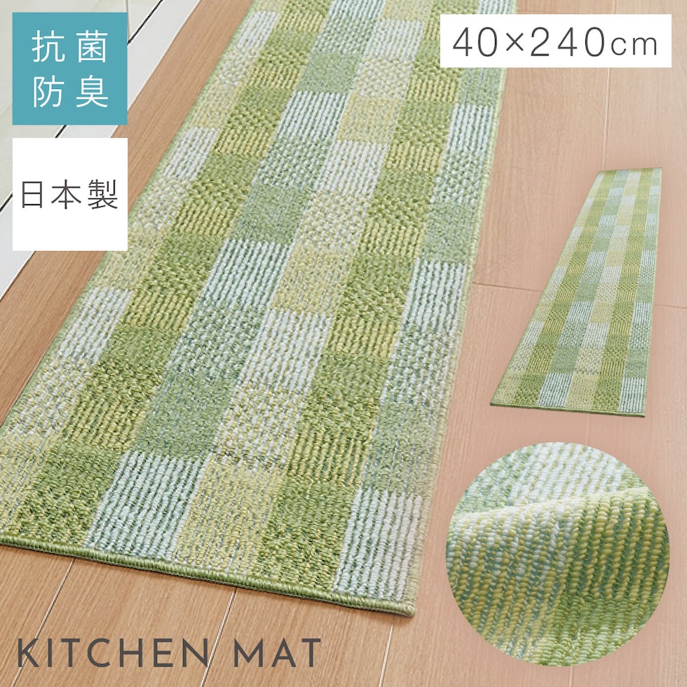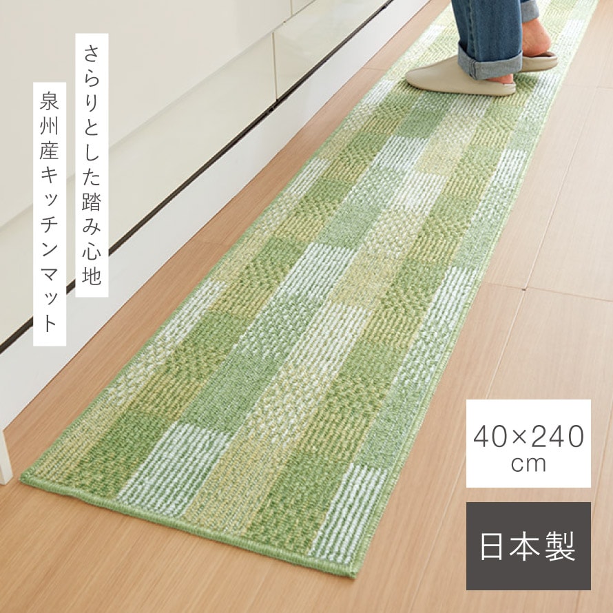 キッチンマット 240×40cm 泉州 日本製 おしゃれ 洗える スリム 滑り止め 滑らない ずれない キッチンカーペット マット 泉州産キッチンマットサニーグリッド 240cm