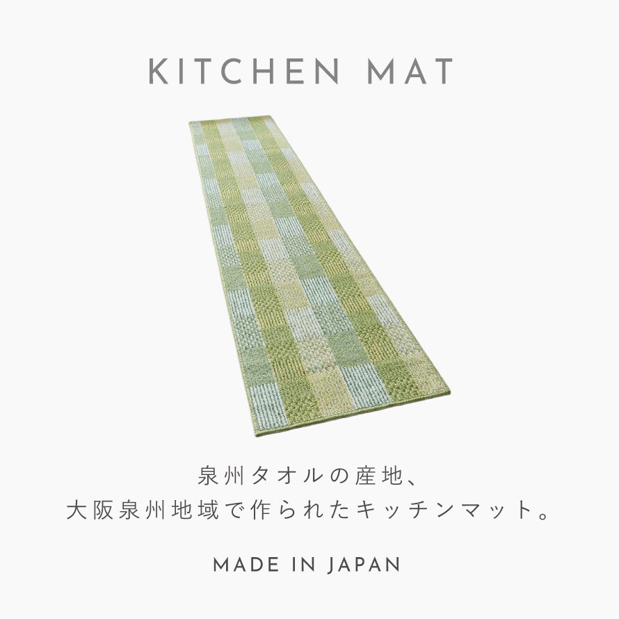 泉州タオルの産地として約130年の歴史と伝統を誇る、大阪泉州地域で生産されたキッチンマット。