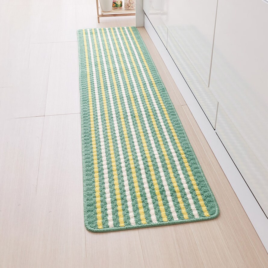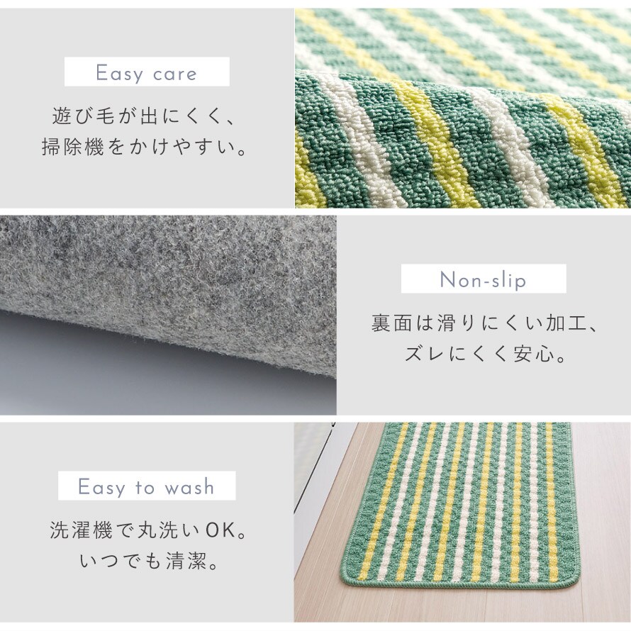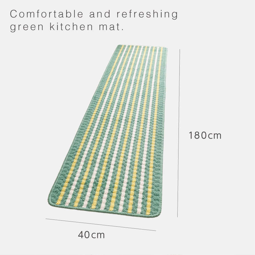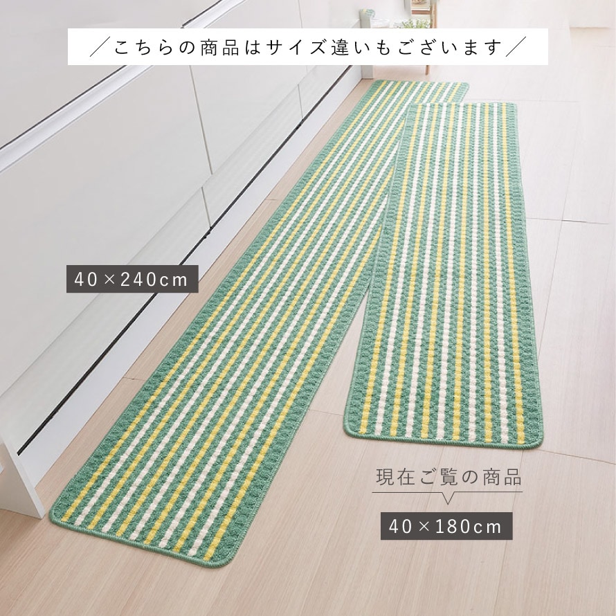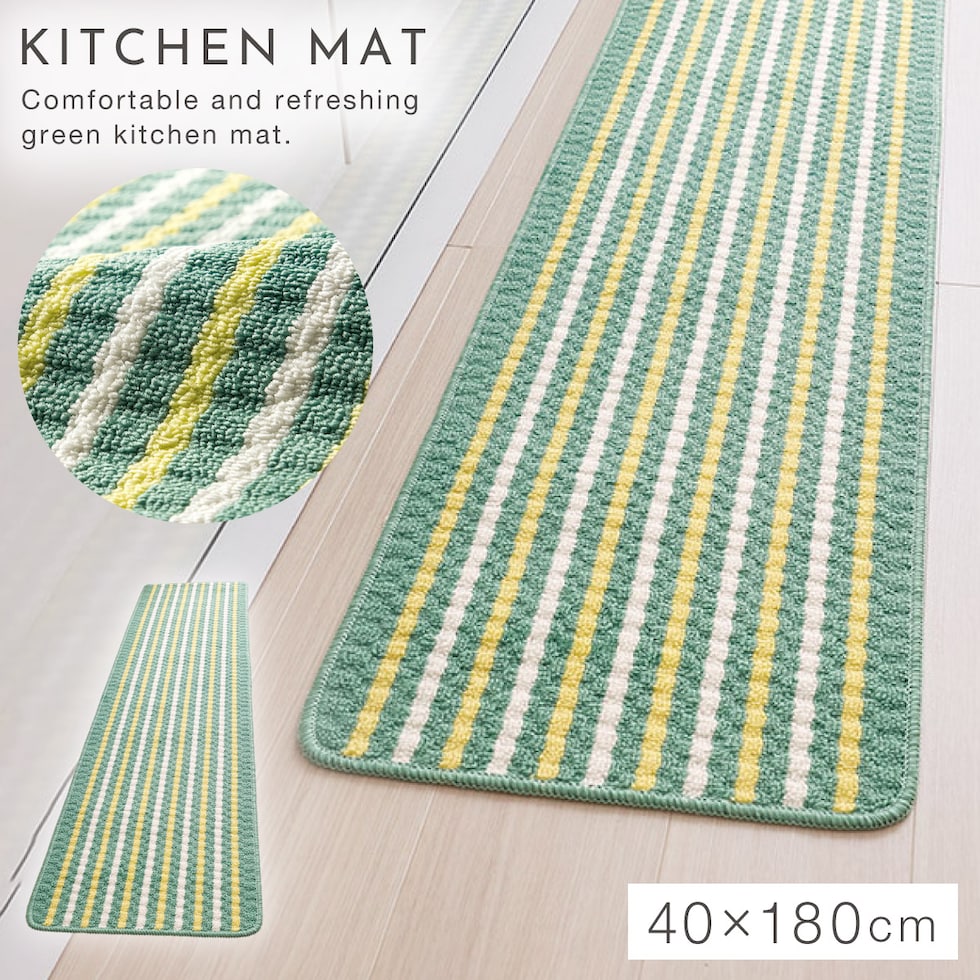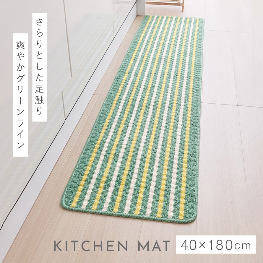 キッチンマット 180×40cm おしゃれ 洗える スリム 滑り止め 滑らない ずれない キッチンカーペット マット グリーン 足もとサラリキッチンマットグリーンライン 180cm