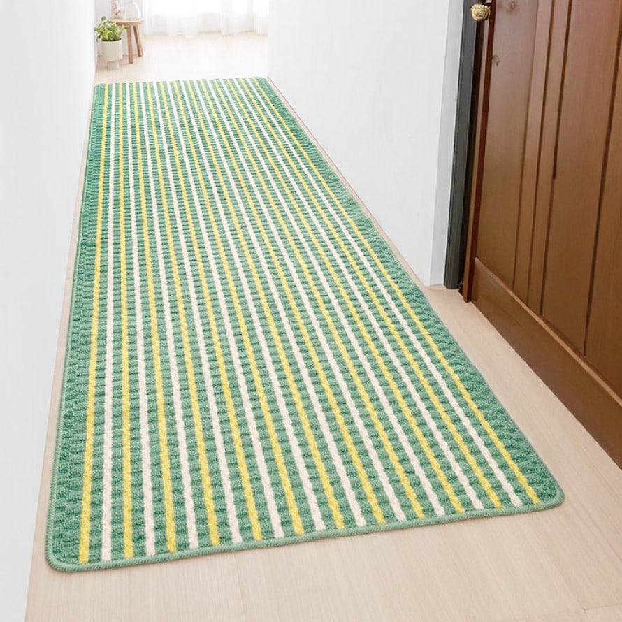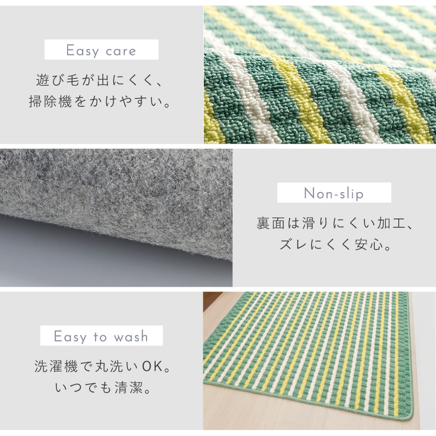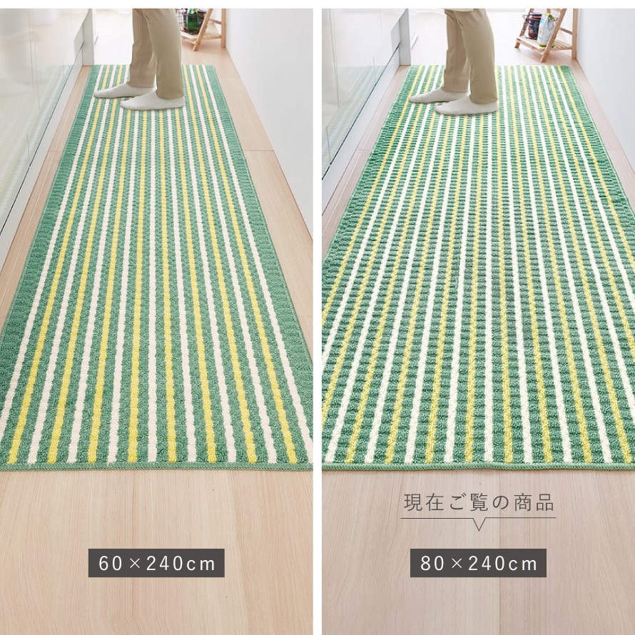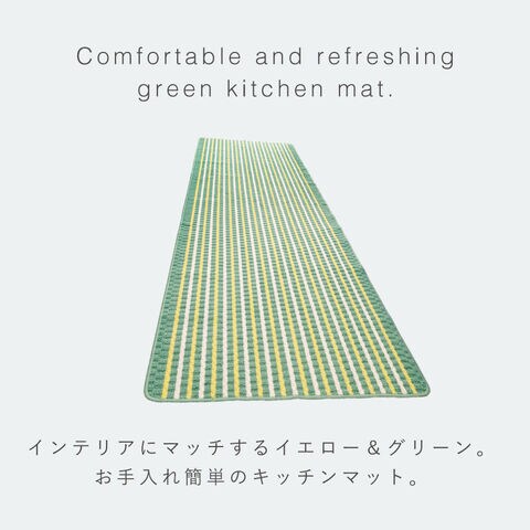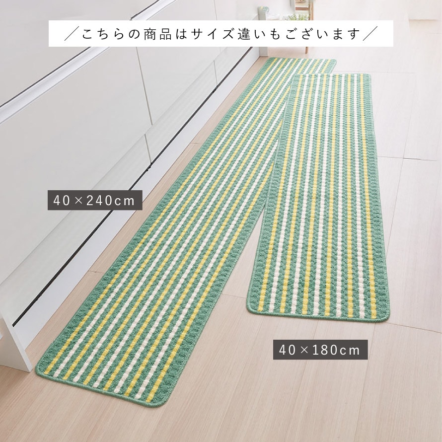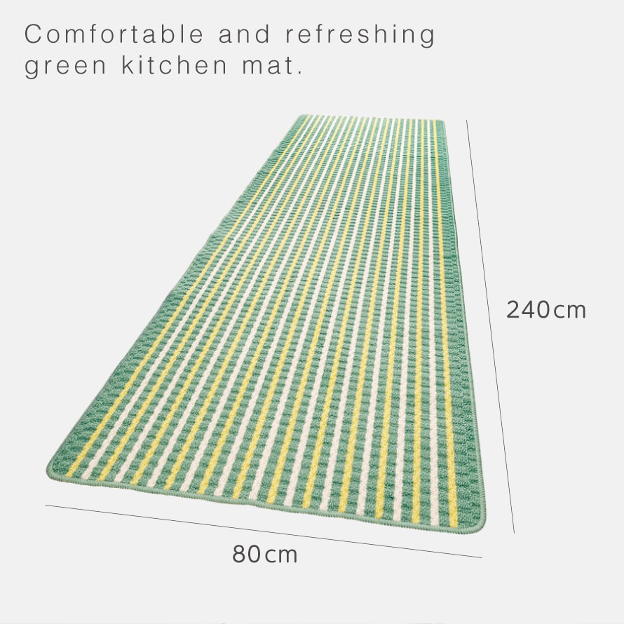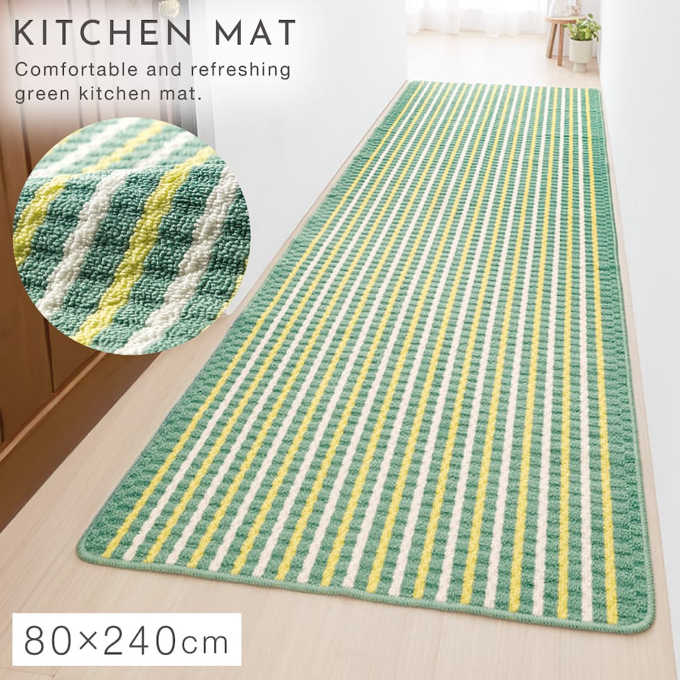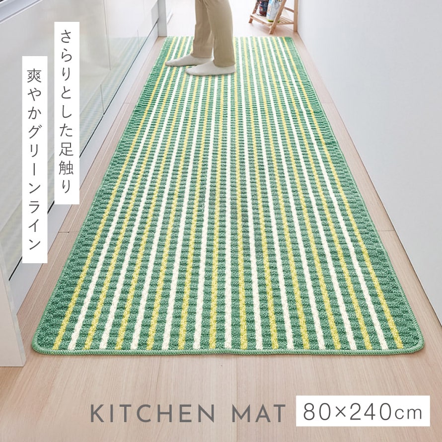 キッチンマット 240×80cm 大きめ ワイド 幅広 おしゃれ 洗える 滑り止め 滑らない ずれない キッチンカーペット マット グリーン 足もとサラリジャンボキッチンマットグリーンライン 240cm