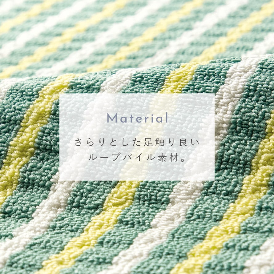 肌触り良く、リップル調(ポコポコしたさざ波のような質感)のループパイル仕上げ。気持ち良い踏み心地です。