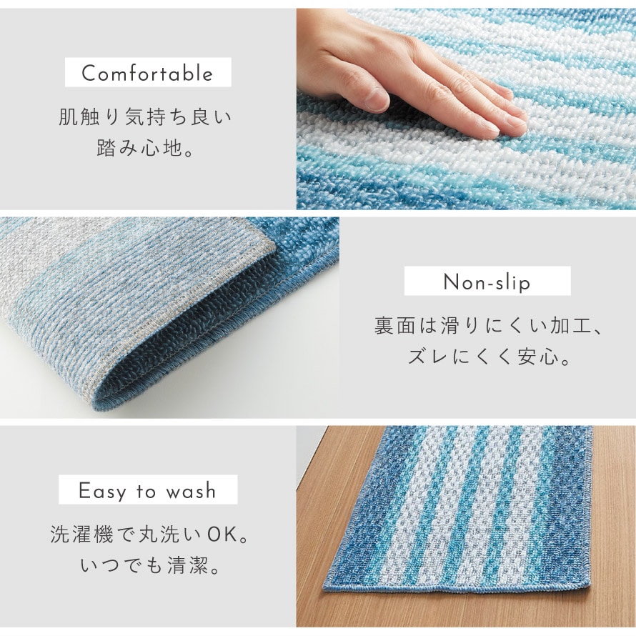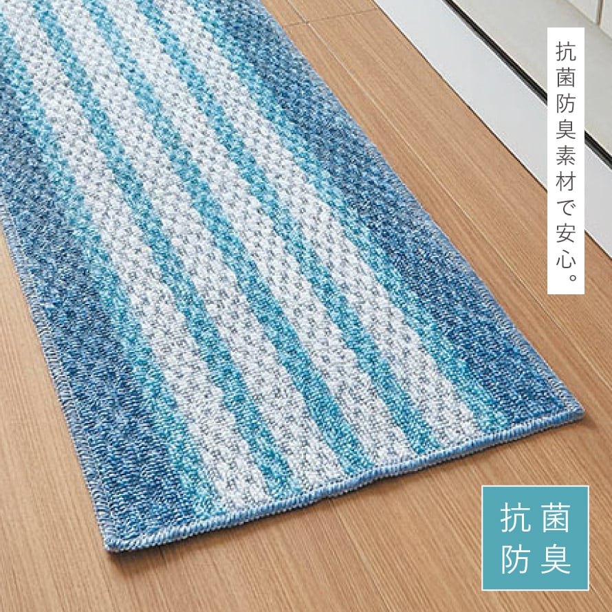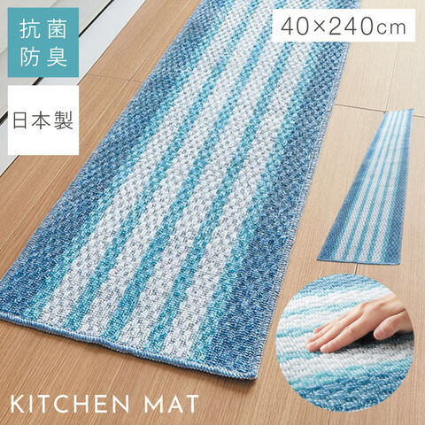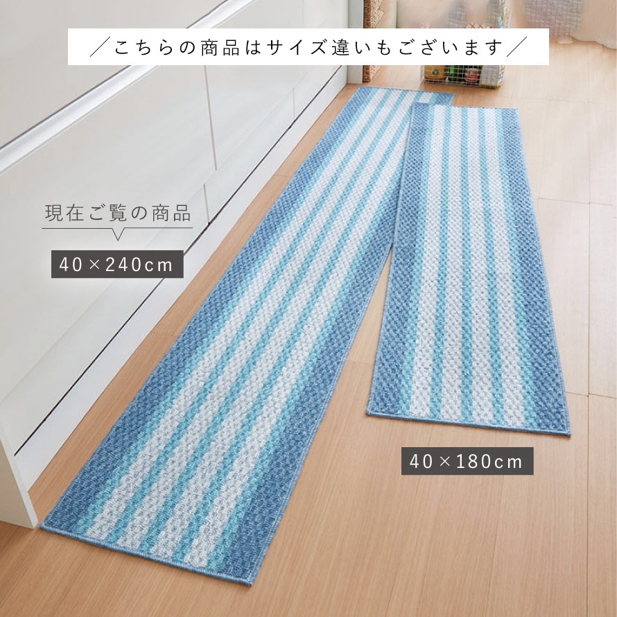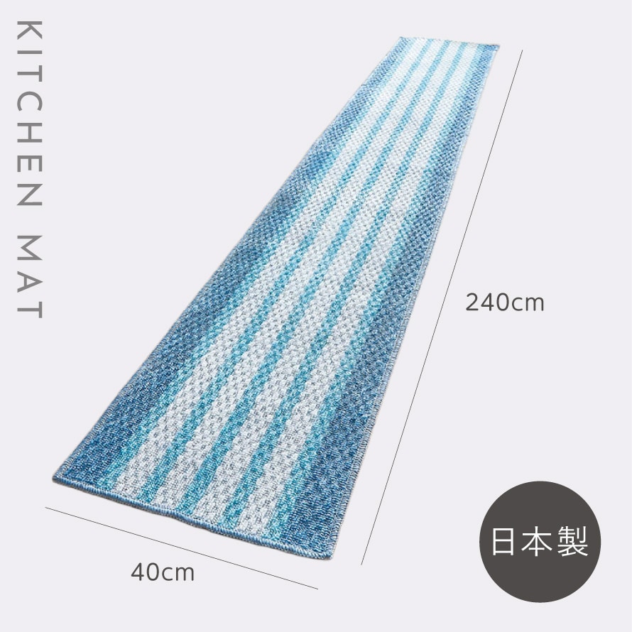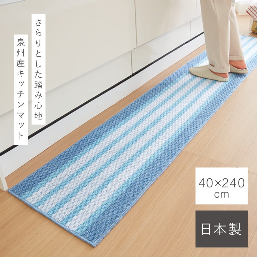 キッチンマット 240×40cm 泉州 日本製 おしゃれ 洗える スリム 滑り止め 滑らない ずれない キッチンカーペット マット ブルー 泉州産キッチンマット ブルーボーダー 240cm