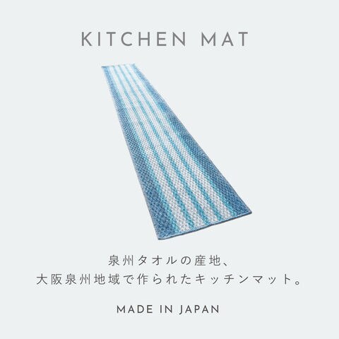 泉州タオルの産地として約130年の歴史と伝統を誇る、大阪泉州地域で生産されたキッチンマット。