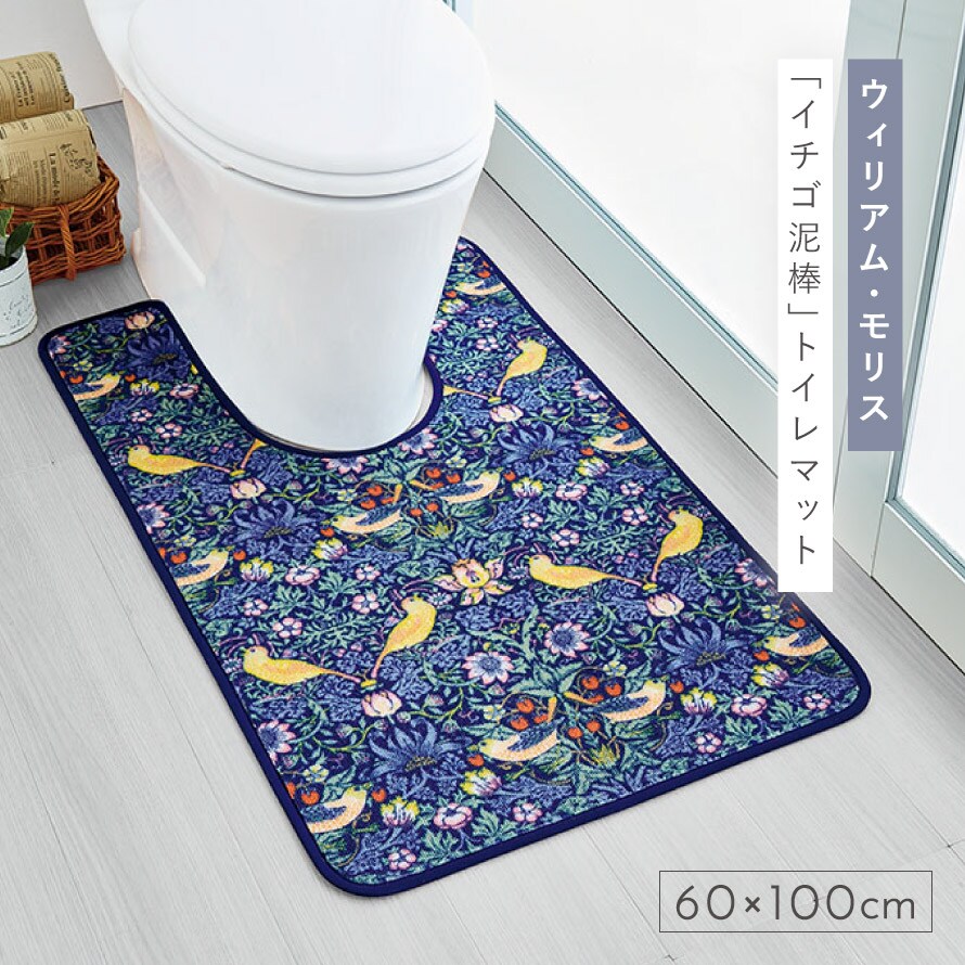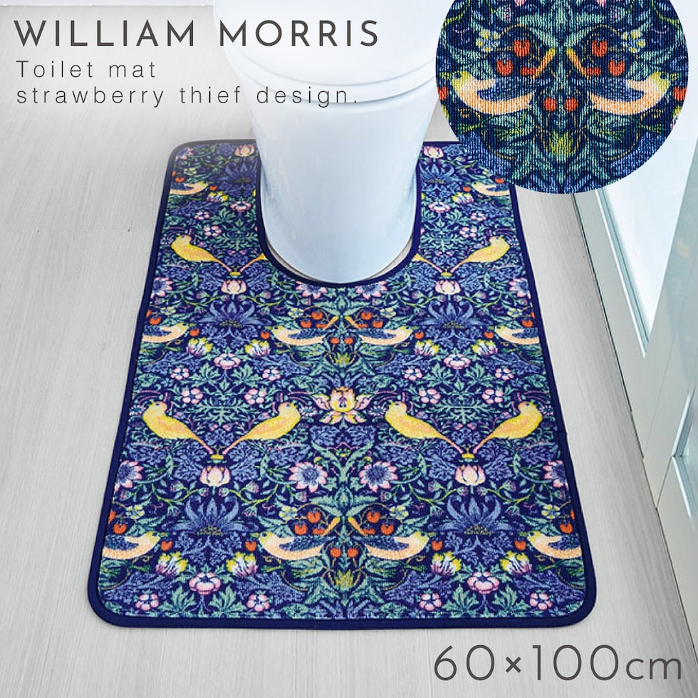 トイレマット 60×100cm 耳長 ロング いちご泥棒 ウィリアムモリス 北欧 おしゃれ 洗える トイレ マット 耳長ロングトイレマット モリスいちご泥棒