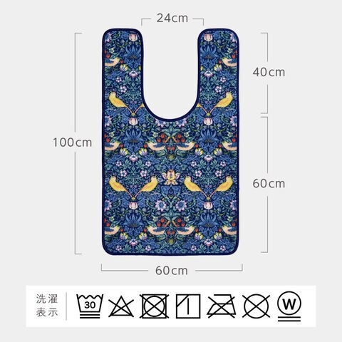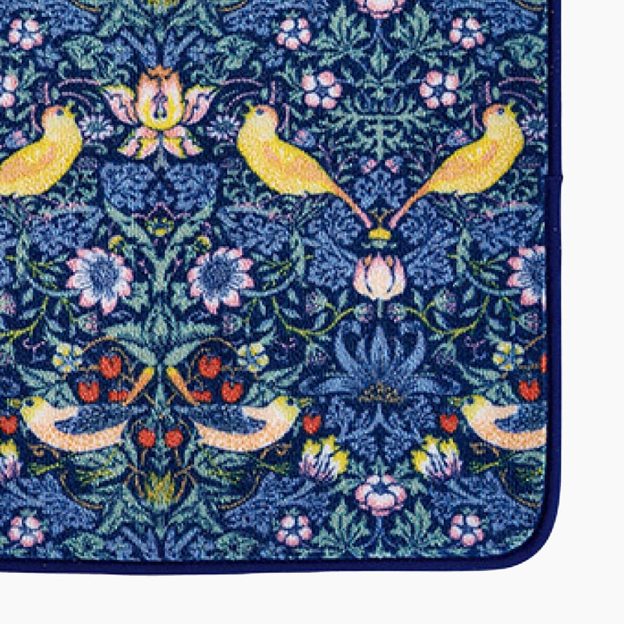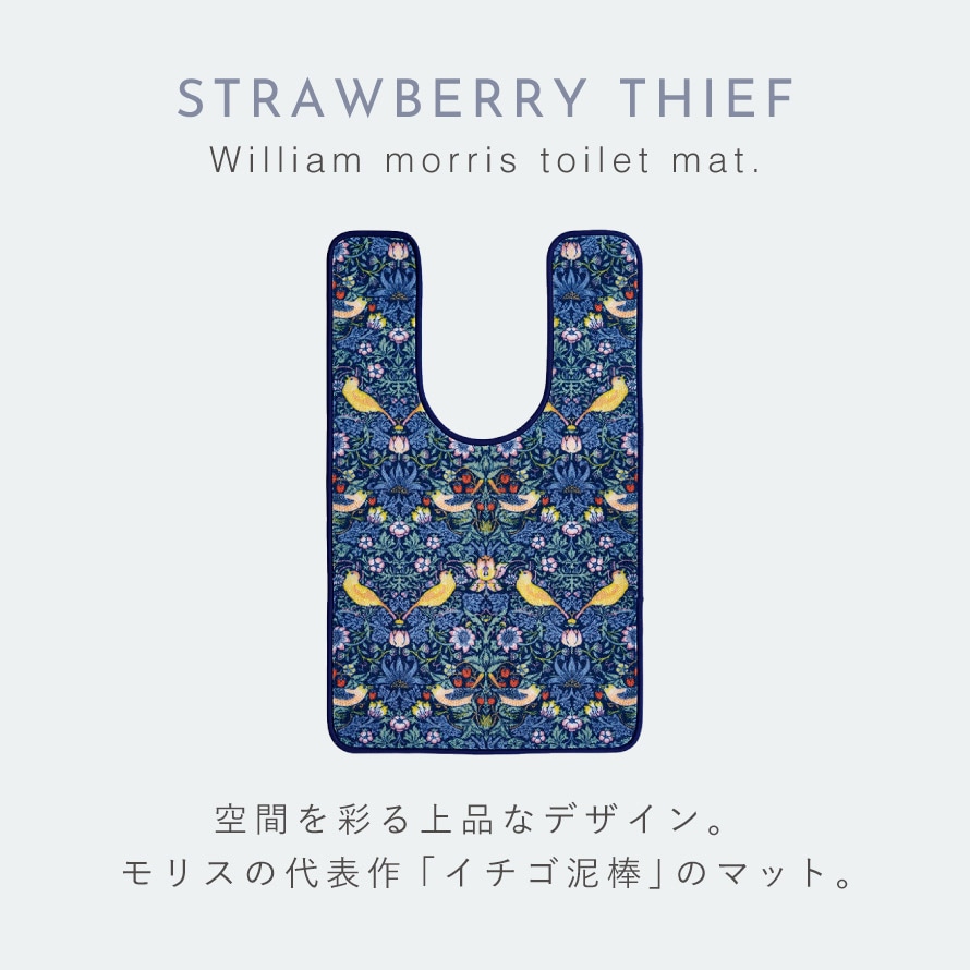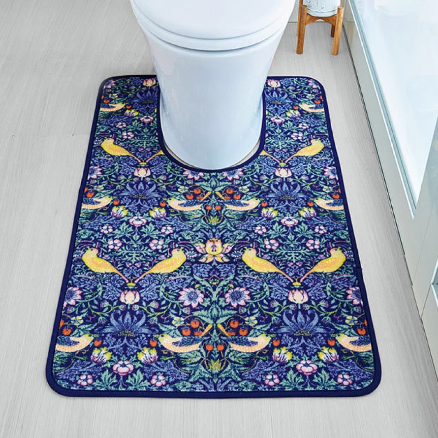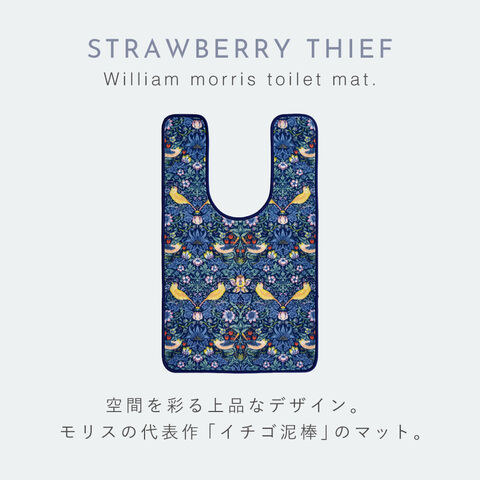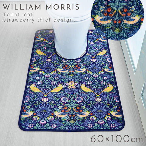 ウィリアム・モリスの代表作「いちご泥棒」のトイレマット。植物、鳥やイチゴの繊細で美しい絵柄が、インテリアに彩りを加えます。