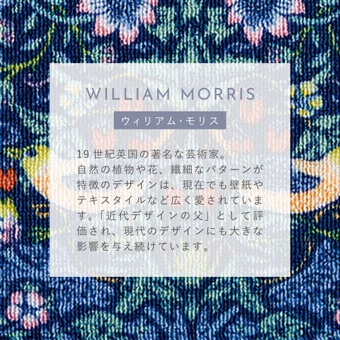 自然の植物や花、繊細なパターンが特徴のデザインは、現在でも壁紙やテキスタイルなど広く愛されています。「近代デザインの父」として評価され、現代のデザインにも大きな影響を与え続けています。