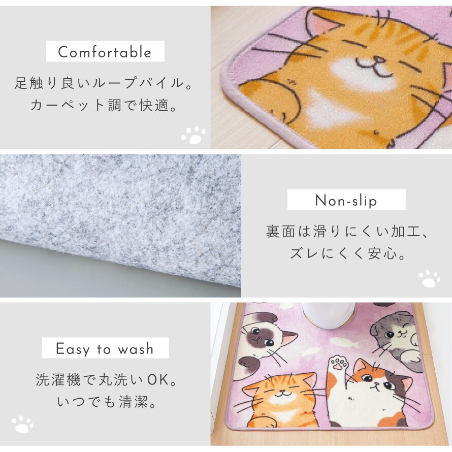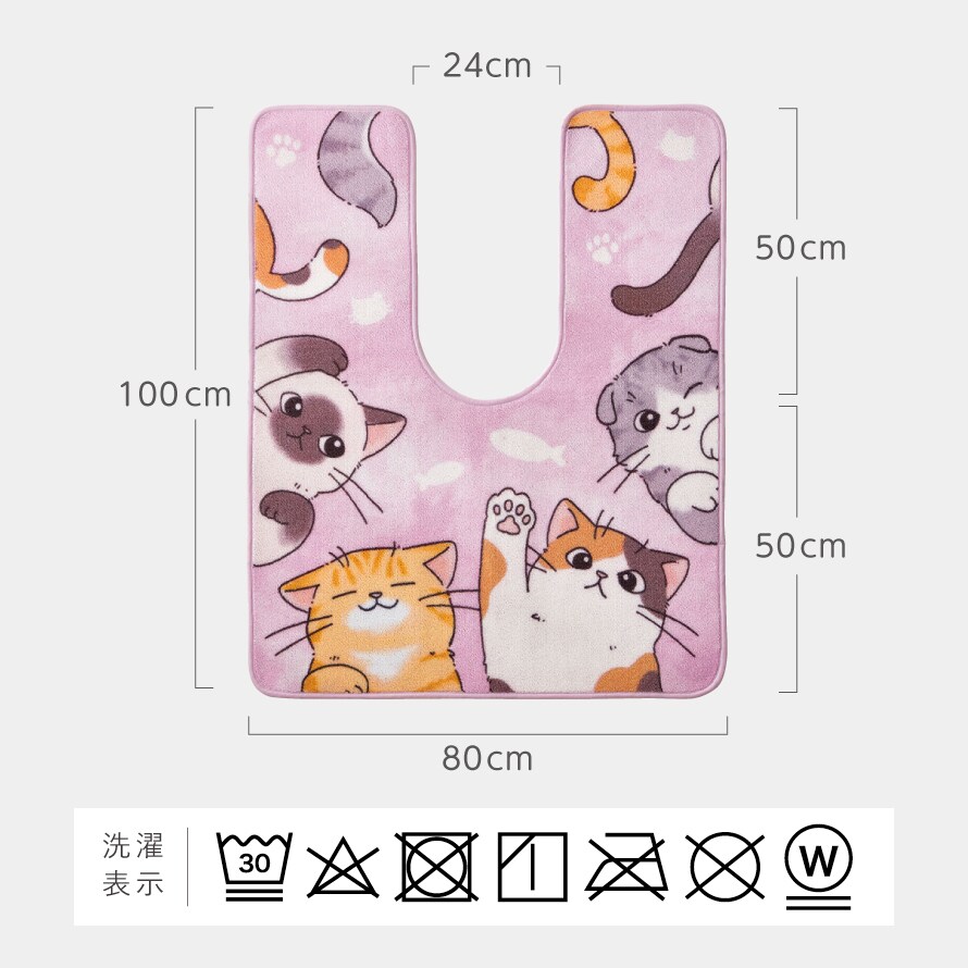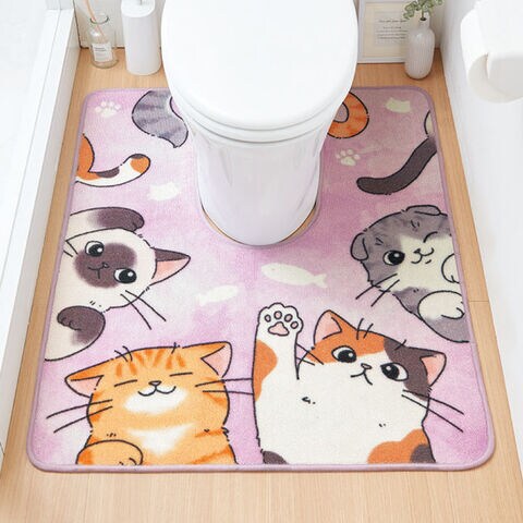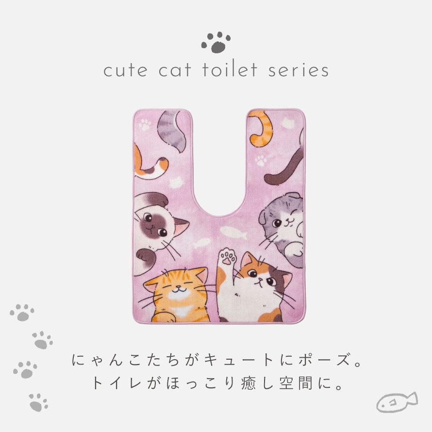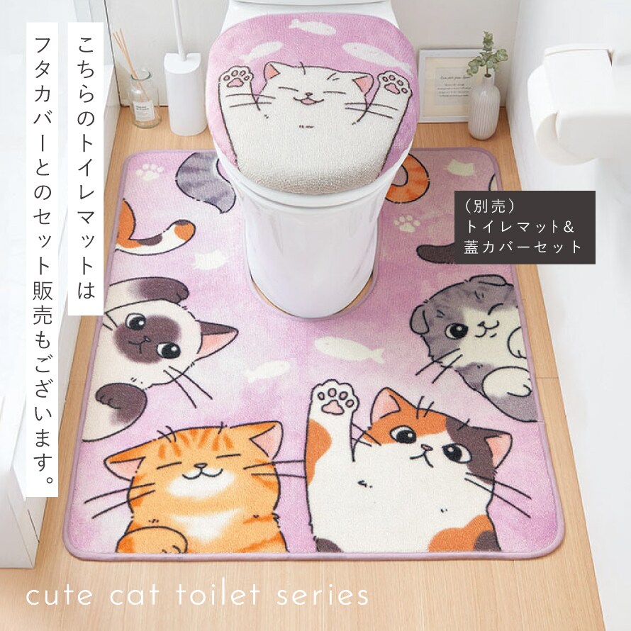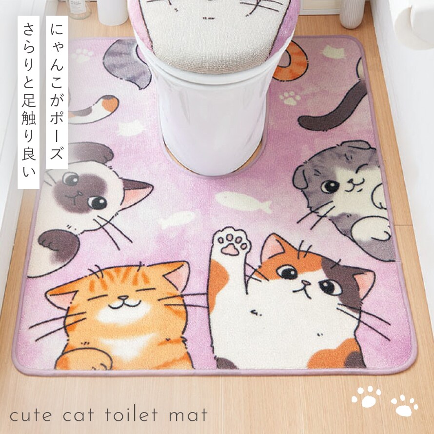 色々な種類のにゃんこたちがキュートなポーズをしたトイレマット。