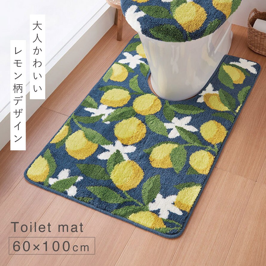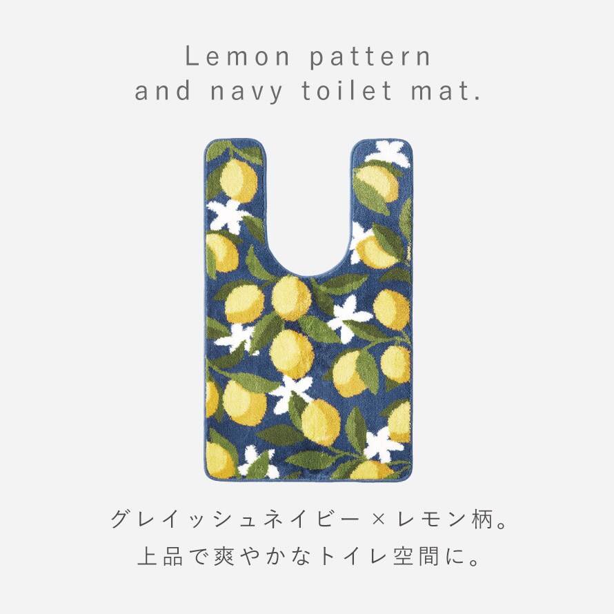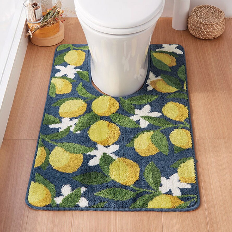 大人可愛いレモン柄デザイン。くすみトーンでナチュラルインテリアにもマッチするトイレマット。