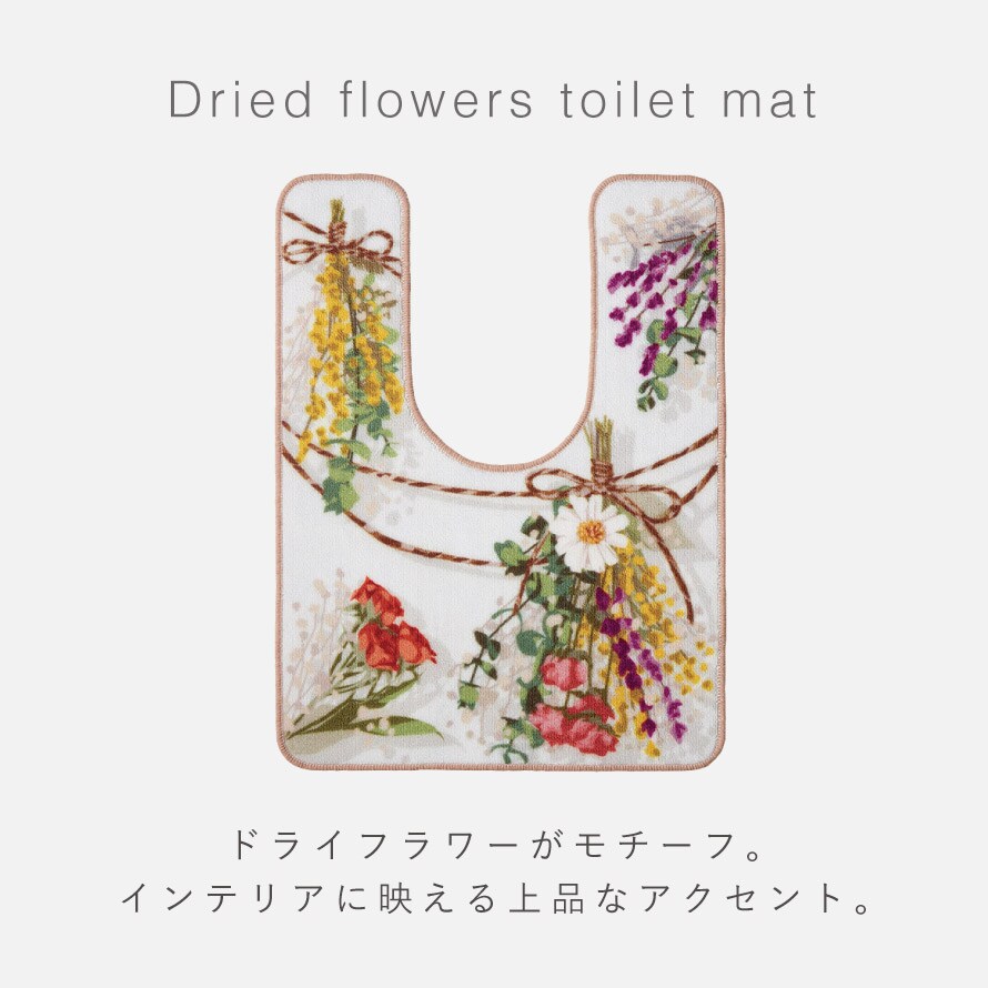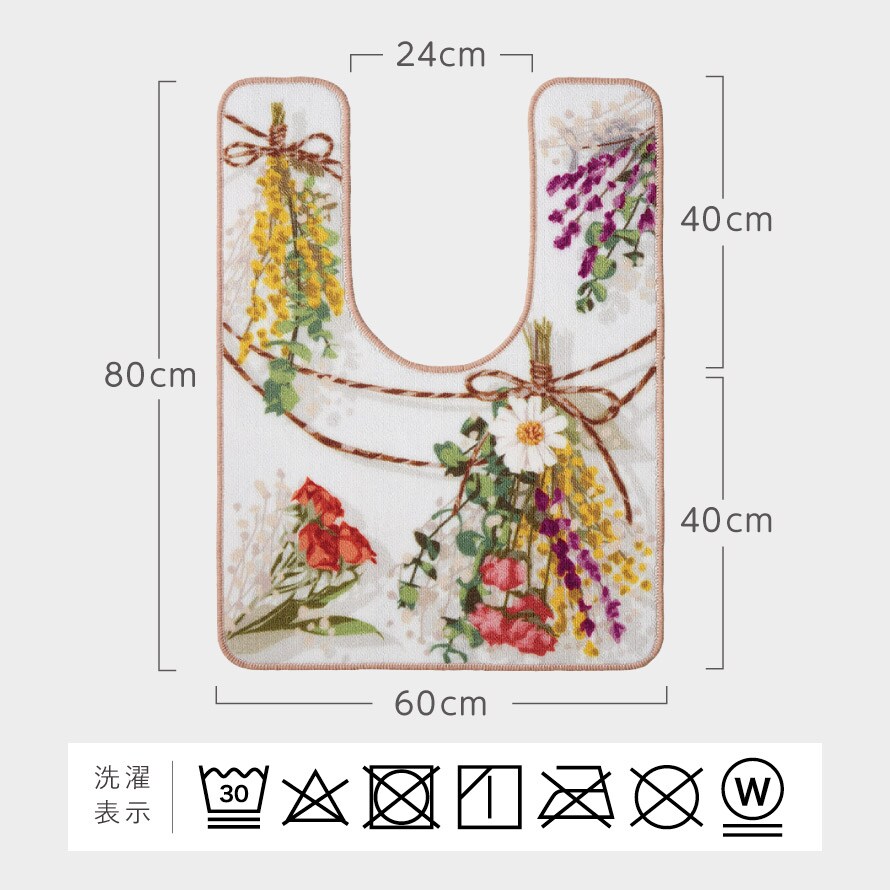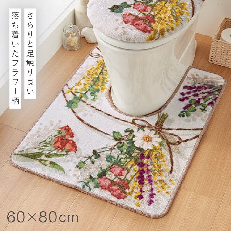 トイレマット 60×80cm 花柄 ミモザ柄 耳長 洗える すべり止め 滑り止め トイレ インテリア おしゃれ 耳長トイレマット ブーケスワッグ