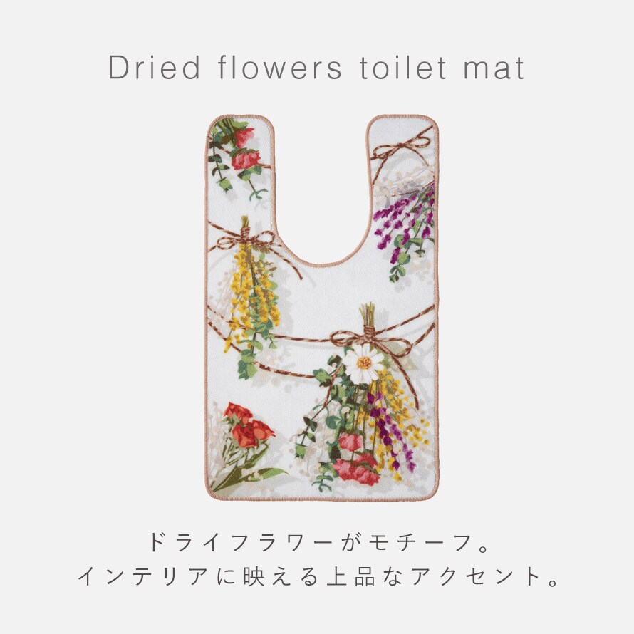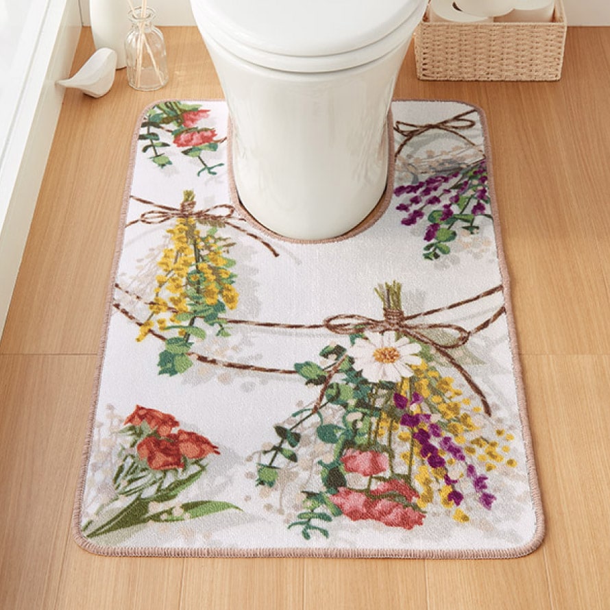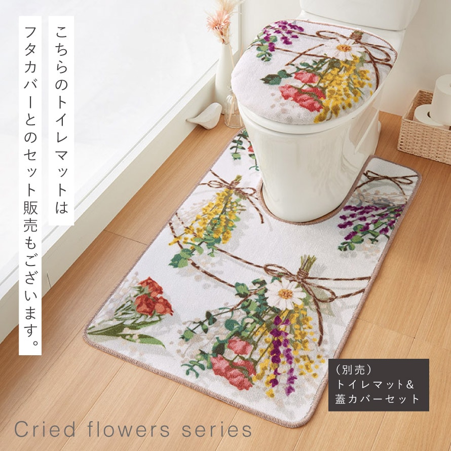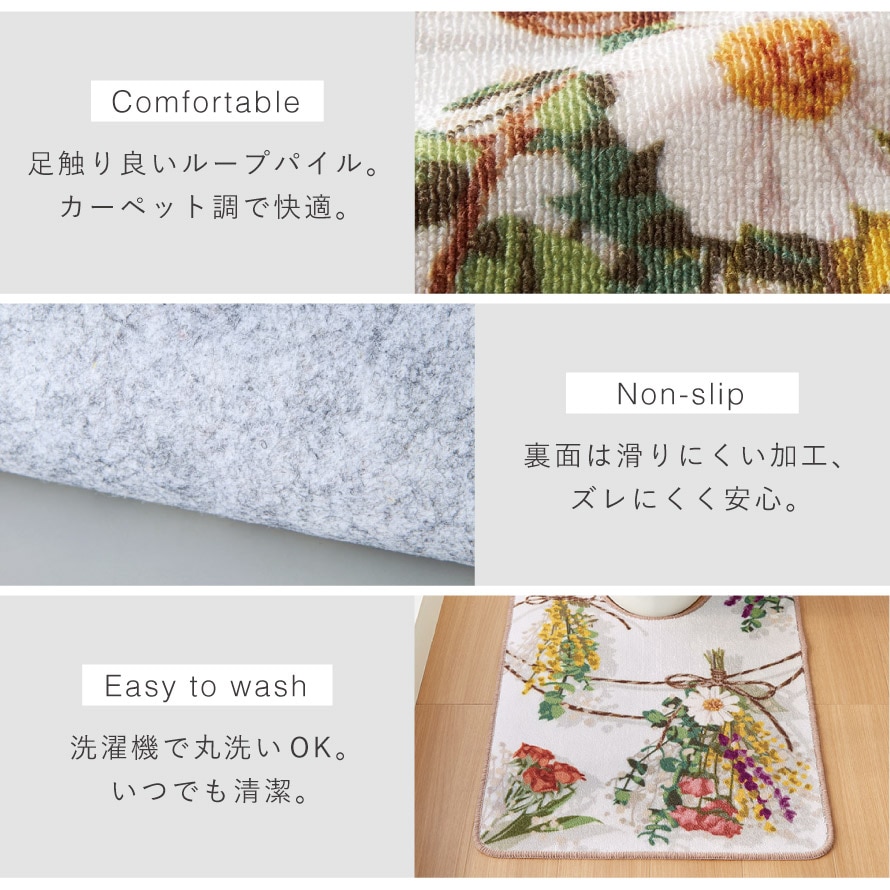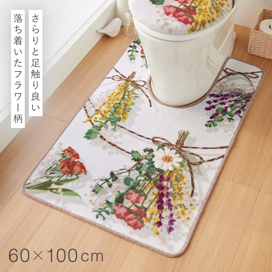 トイレマット 60×100cm 花柄 ミモザ柄 耳長 ロング 洗える すべり止め 滑り止め トイレ インテリア おしゃれ 耳長ロングトイレマット ブーケスワッグ