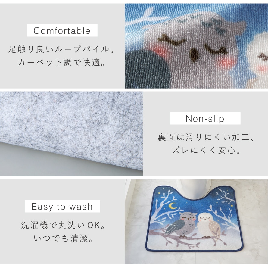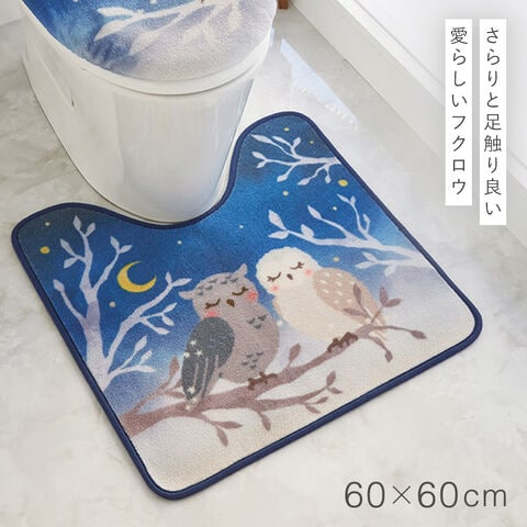 トイレマット 60×60cm フクロウ ブルー 洗える すべり止め 滑り止め トイレ インテリア おしゃれ レギュラートイレマット 夜明け