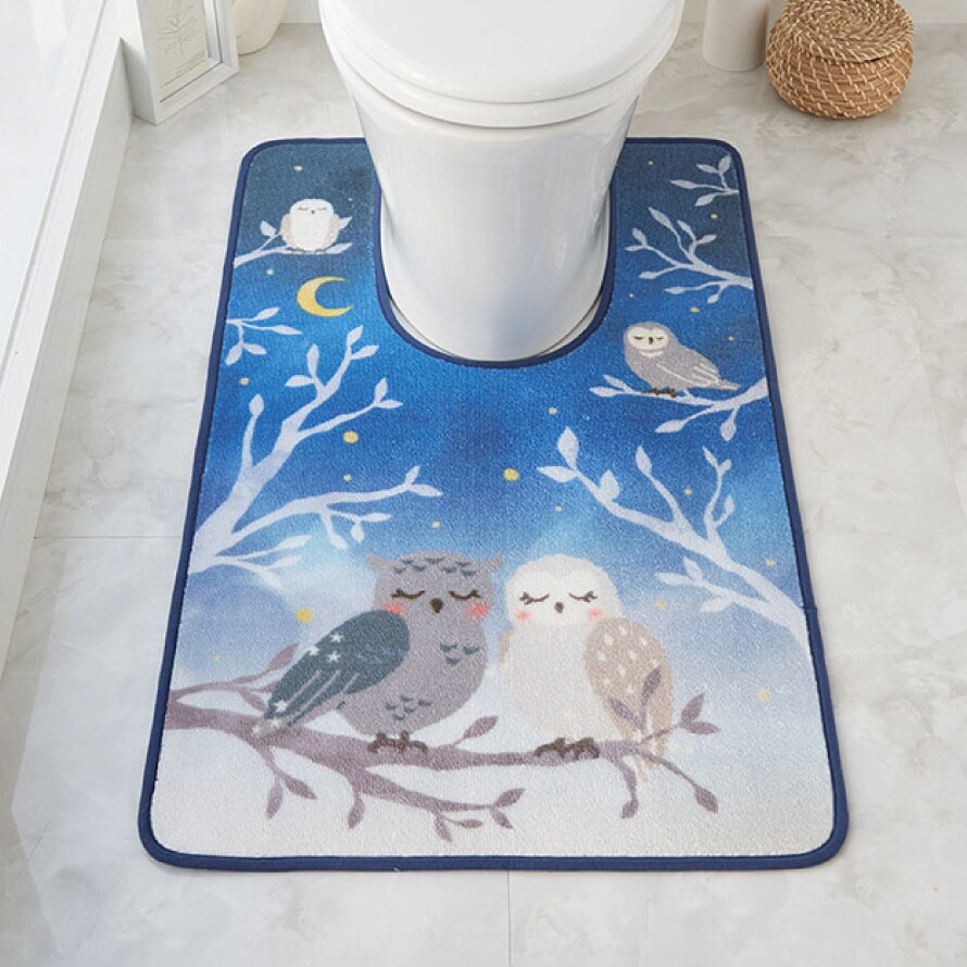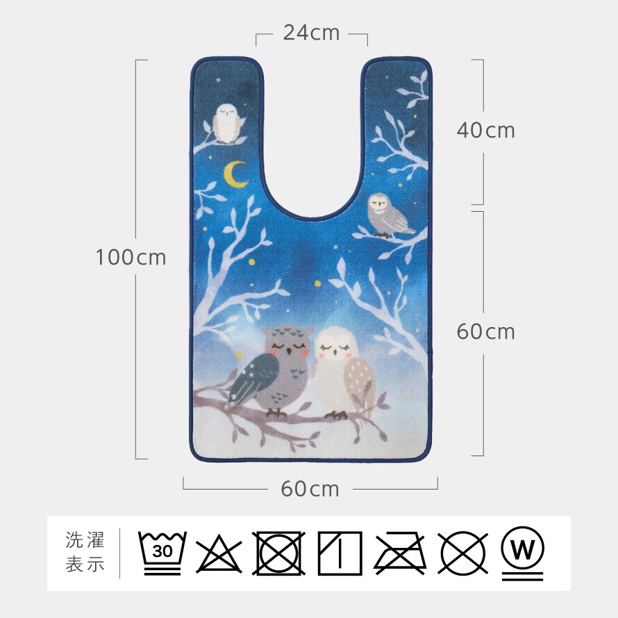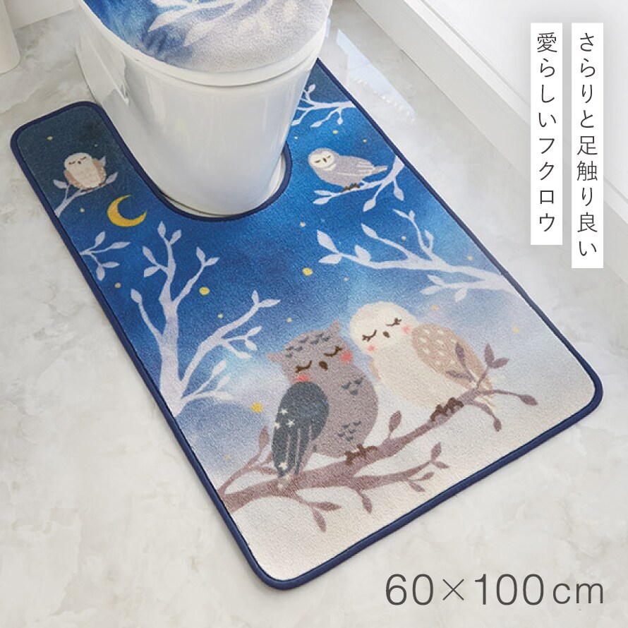 トイレマット 60×100cm フクロウ ブルー 耳長 ロング 洗える すべり止め 滑り止め トイレ インテリア おしゃれ 耳長ロングトイレマット 夜明け
