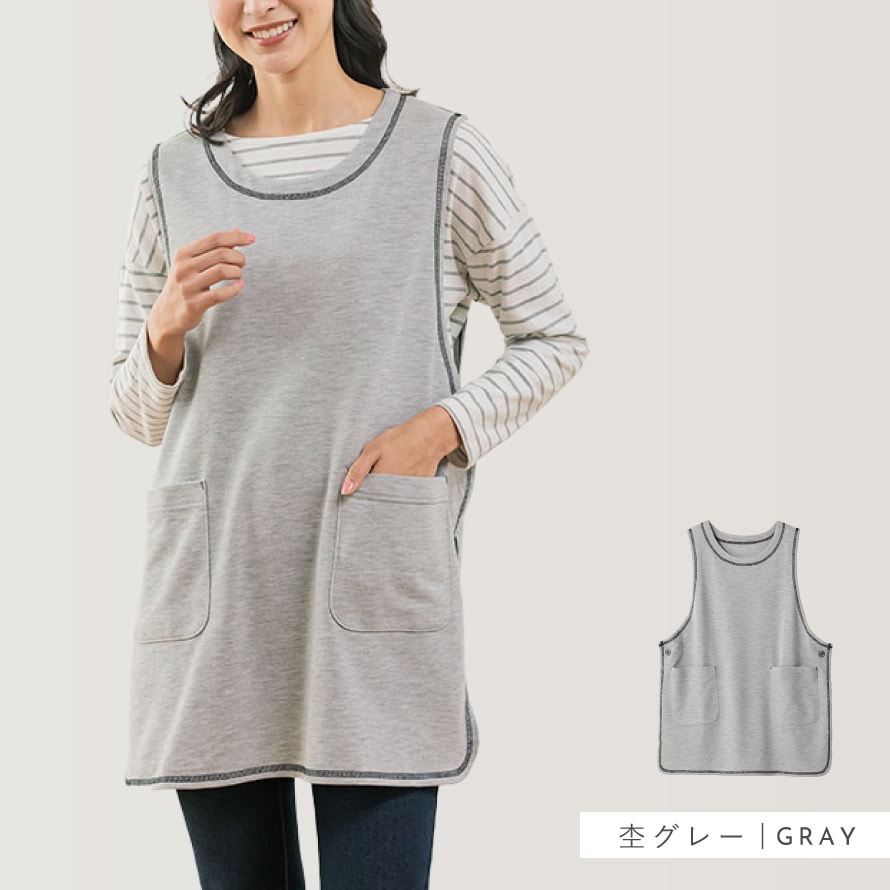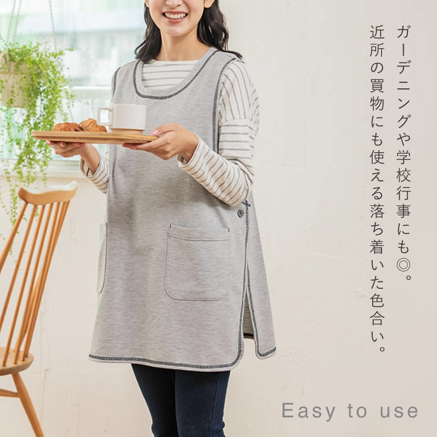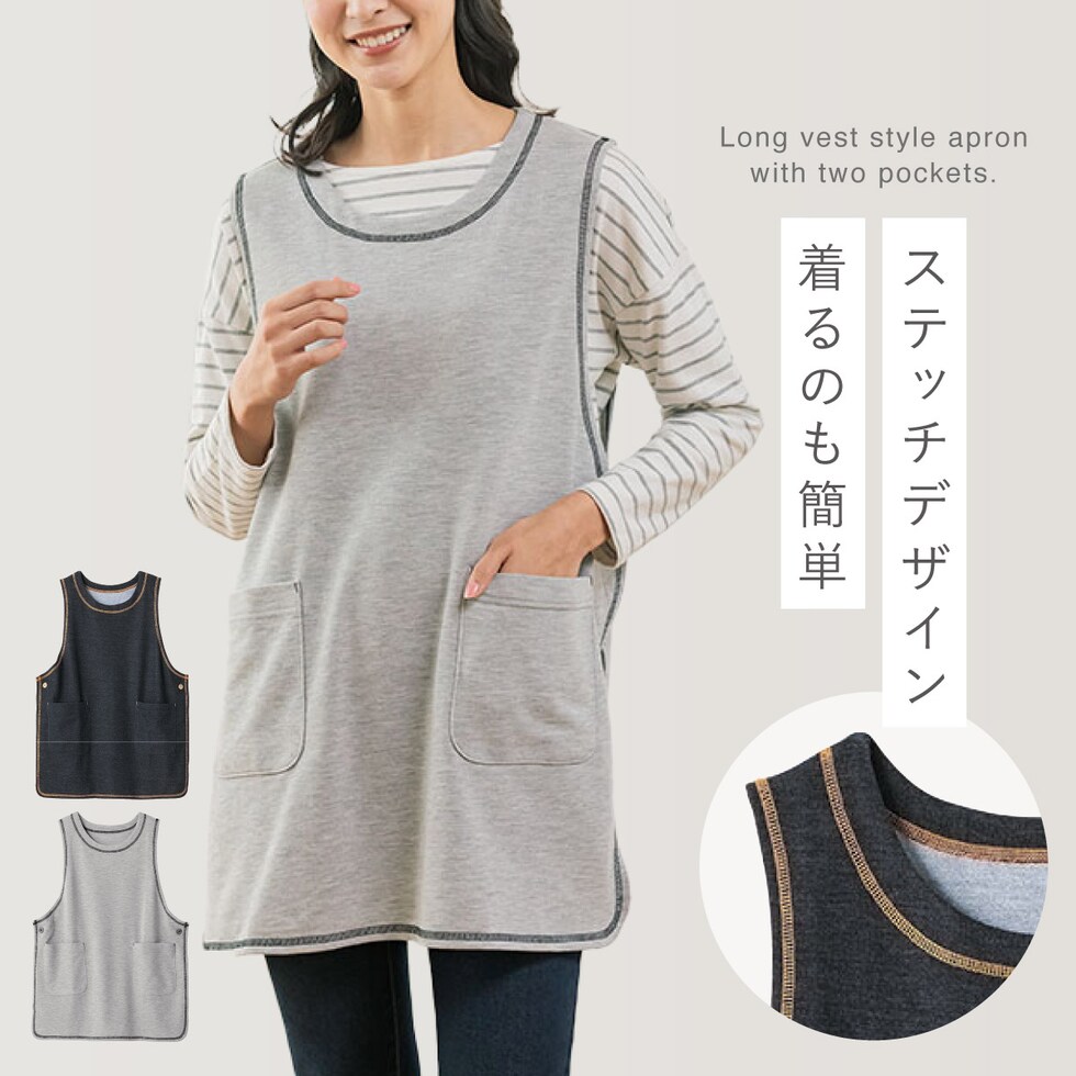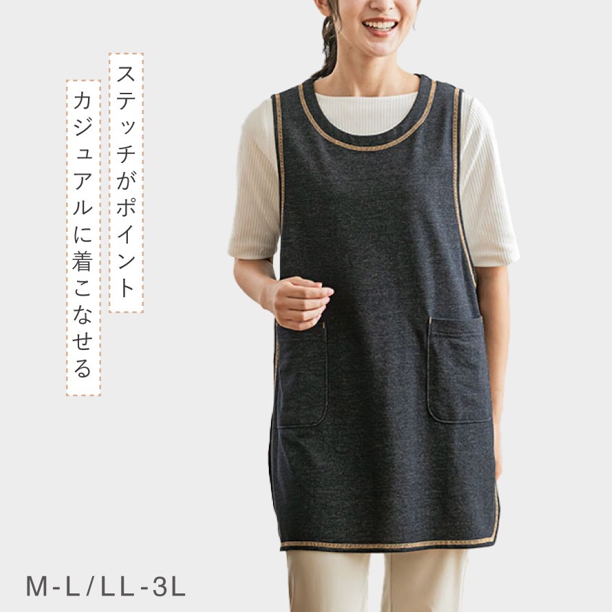 チュニック エプロン レディース かぶるだけ デニム サイドボタン ベスト型 袖なし 大人 おしゃれ チュニックエプロン 動きやすいベスト型エプロン