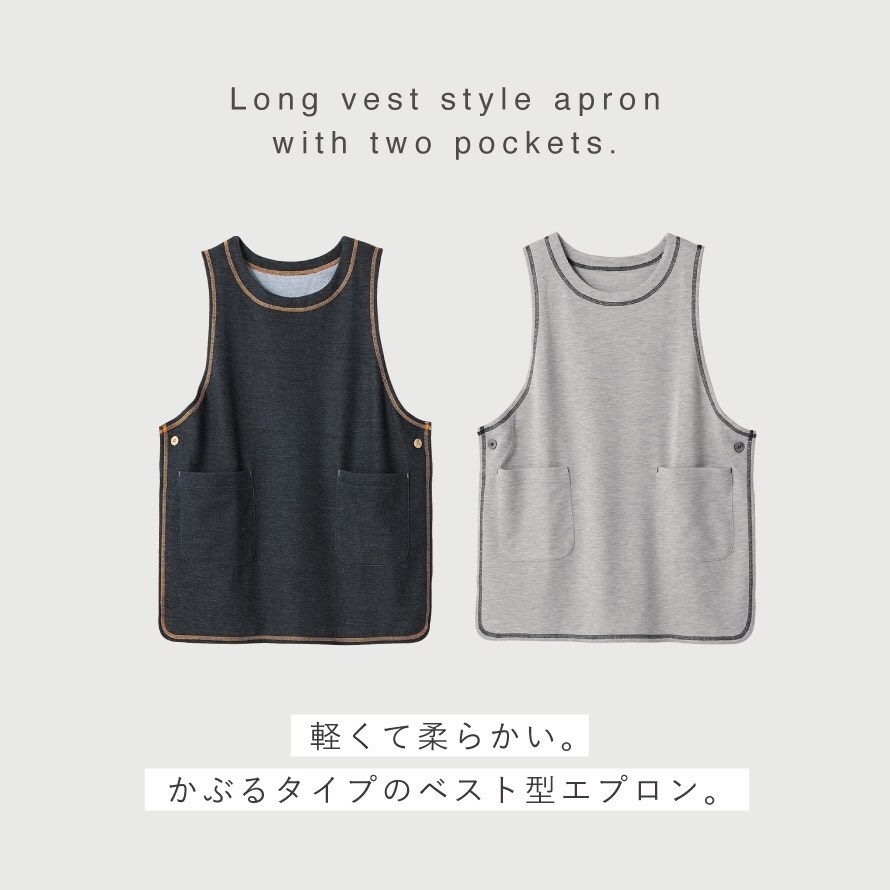 軽くて柔らかい、カジュアルに着こなせるベスト型エプロン。