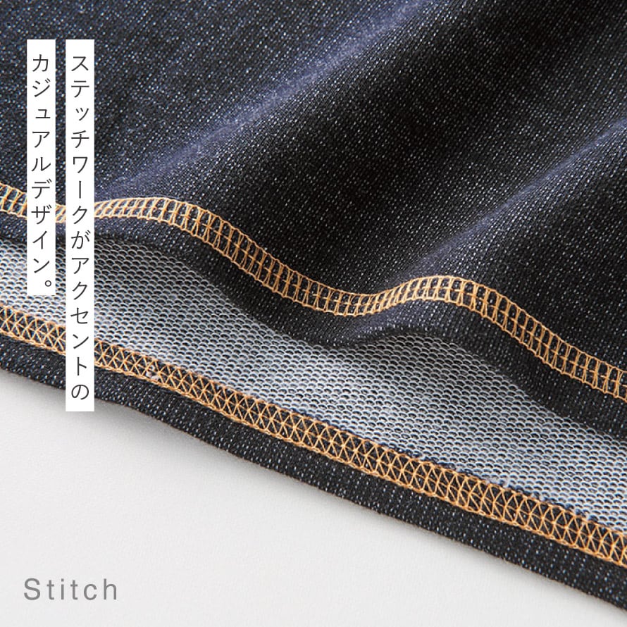 カラーは、イエロー系のステッチがポイントのデニム調・使いやすい杢グレーの2色から、サイズはM-L、LL-3Lからお選びいただけます。