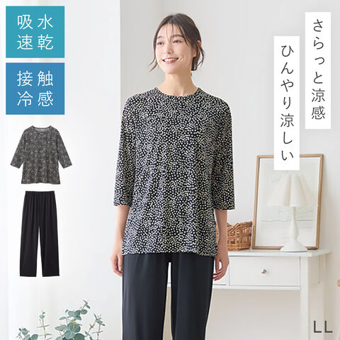 ルームウェア レディース 夏 パジャマ 接触冷感 速乾 七分袖 上下セット 女性 涼しい さらさらリラックスルームウェア(ブルーグレー・ブラック) M L LL 大きいサイズ ゆったり ミセス シニア