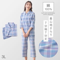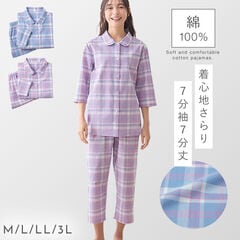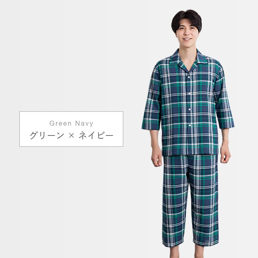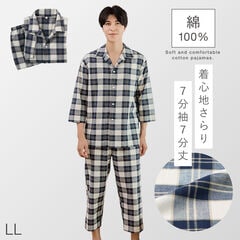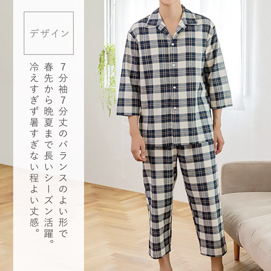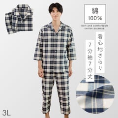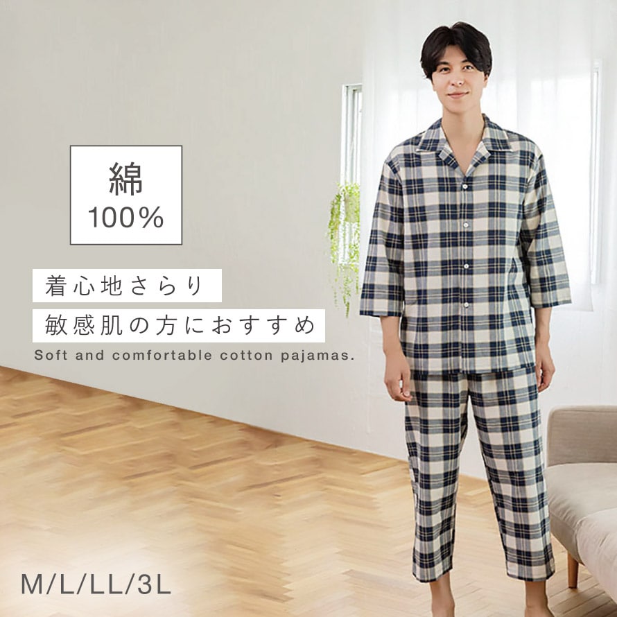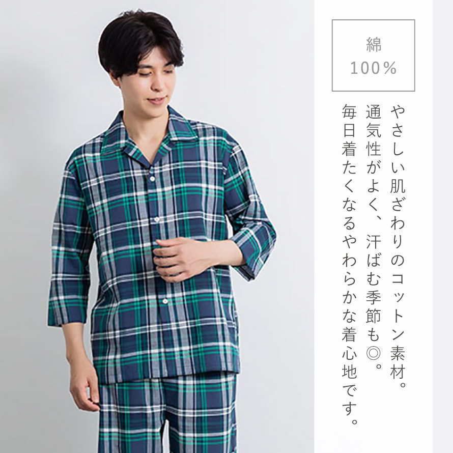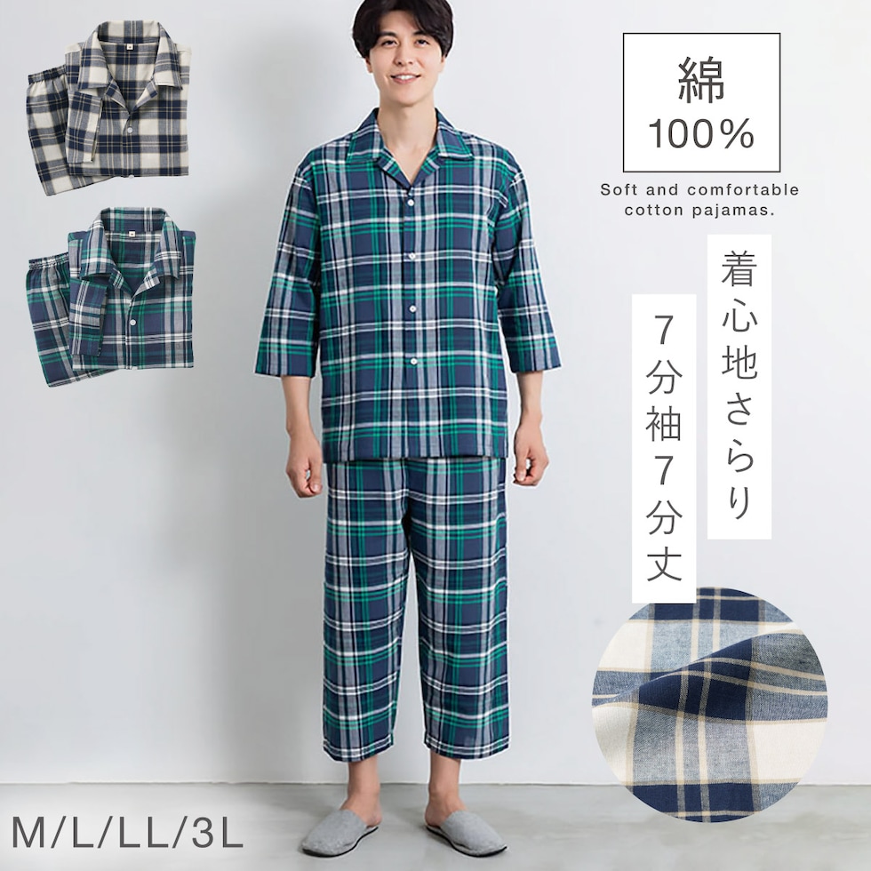 パジャマ メンズ 綿100% パジャマ 男性 前開き 春 夏 七分袖 七分丈 チェック 上下セット 綿100%くつろぎ先染めパジャマメンズ M L LL 3L 大きいサイズ ゆったり シニア