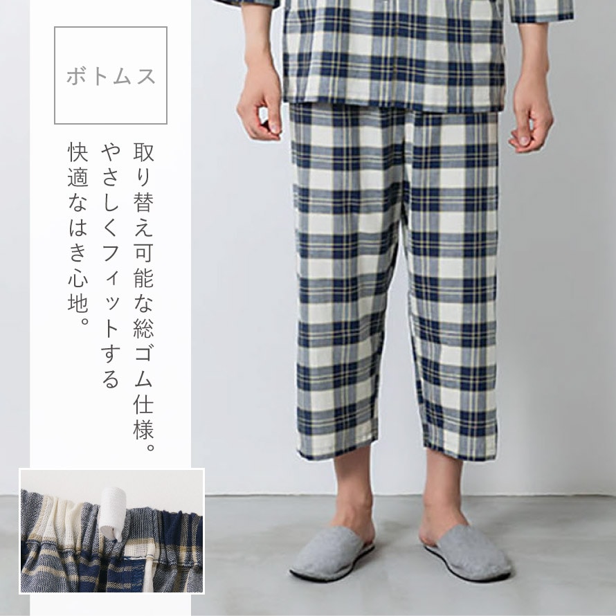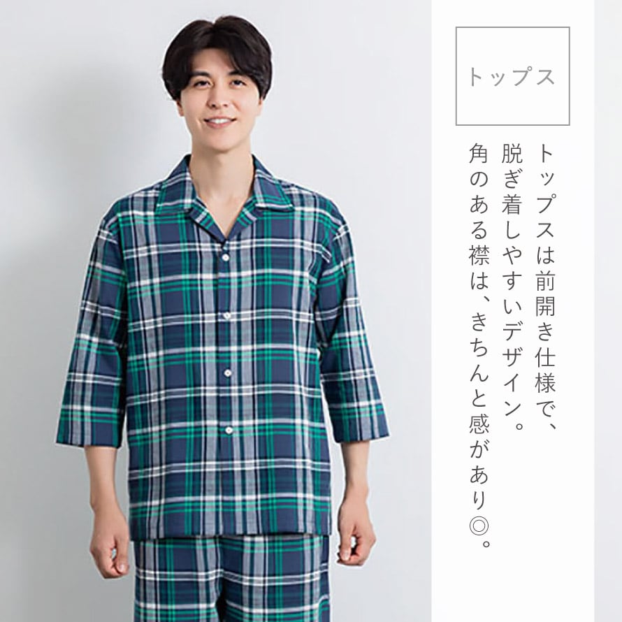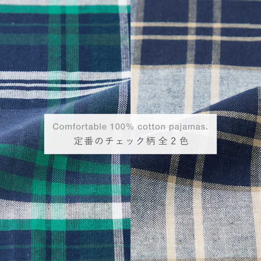 さらさらと心地よい、綿100%の先染めメンズパジャマ。
