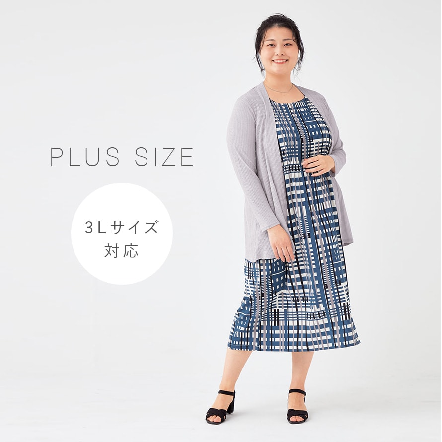 | サイズ | 身長154-162、M-L/バスト79-94、身丈105、肩幅30、袖丈67、LL-3L/バスト93-108、身丈107、肩幅32、袖丈72cm |