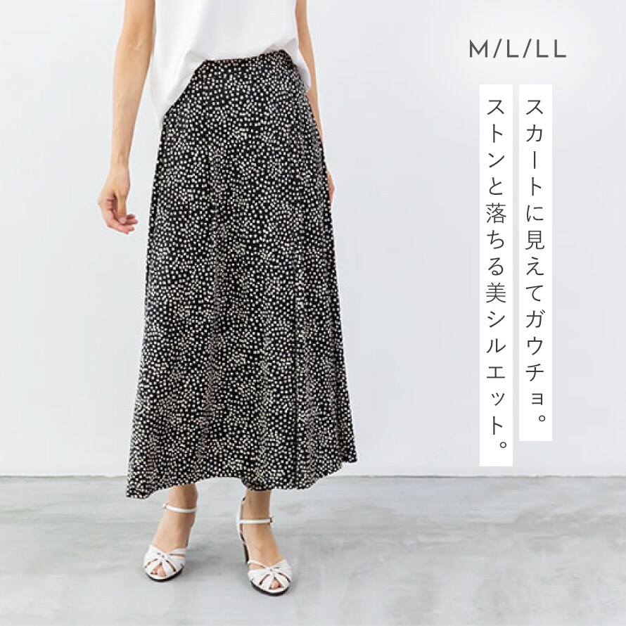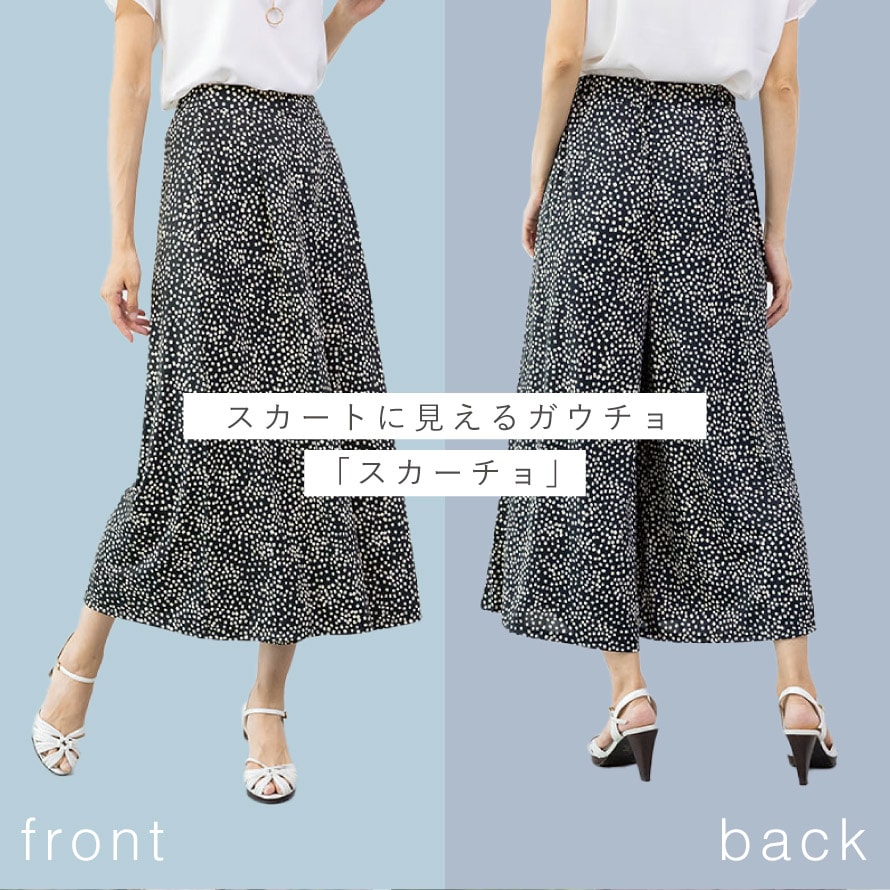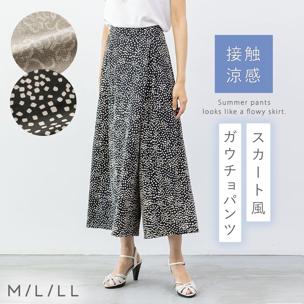 スカート風パンツ レディース スカーチョ きれいめ 夏 冷感 ガウチョパンツ 接触冷感 涼しい ワイドパンツ ウエストゴム 花柄 ドット ゆれる涼感スカーチョ 体型カバー M L LL 3L 大きいサイズ ゆったり 50代 60代 70代 ミセス ファッション