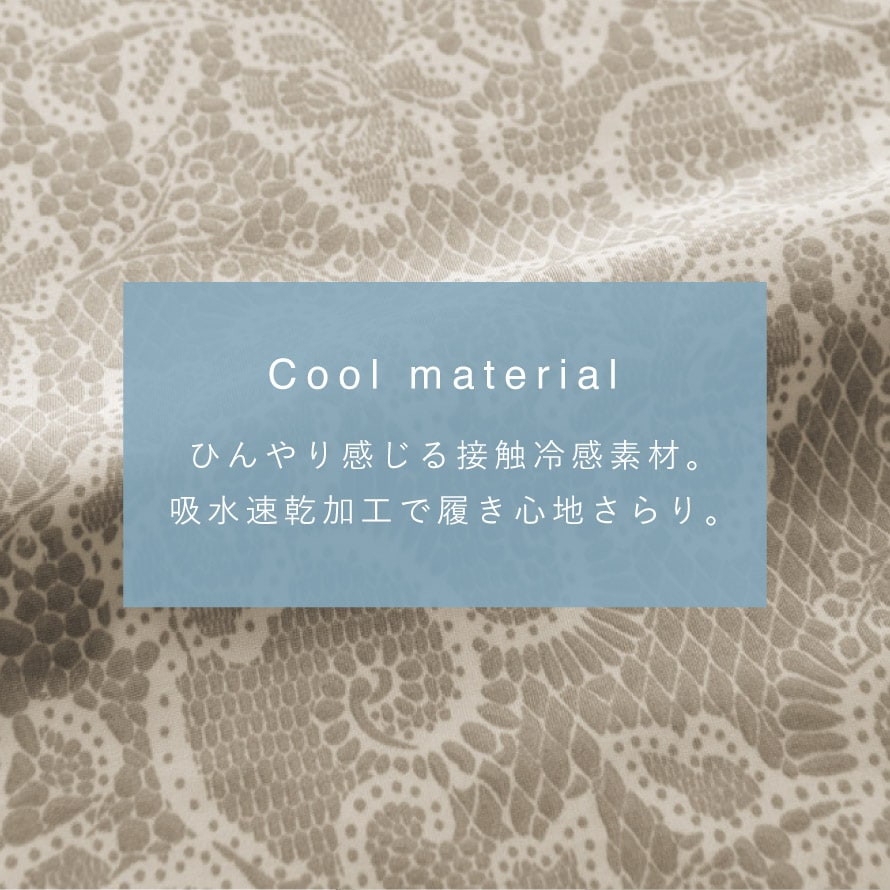 履いた瞬間ひんやり感じる接触冷感素材に、吸水速乾加工を施しているので暑い季節も快適。