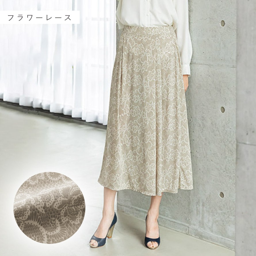 シルエットはスカートなのに、足を広げても安心のパンツ仕様の「スカーチョ」。スカートの時の気遣いが必要なく快適な着心地です。
