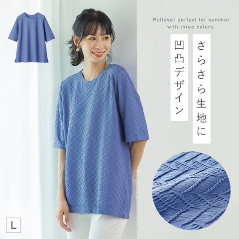 立体的な柄がアクセント。夏らしいカラーで明るく見せるプルオーバー。