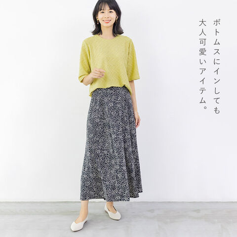凹凸のあるさざなみ柄が上品な印象。ボトムスにインしても大人可愛いアイテム。