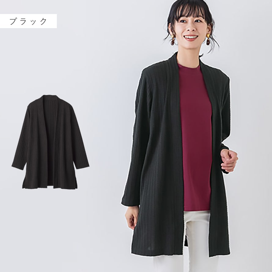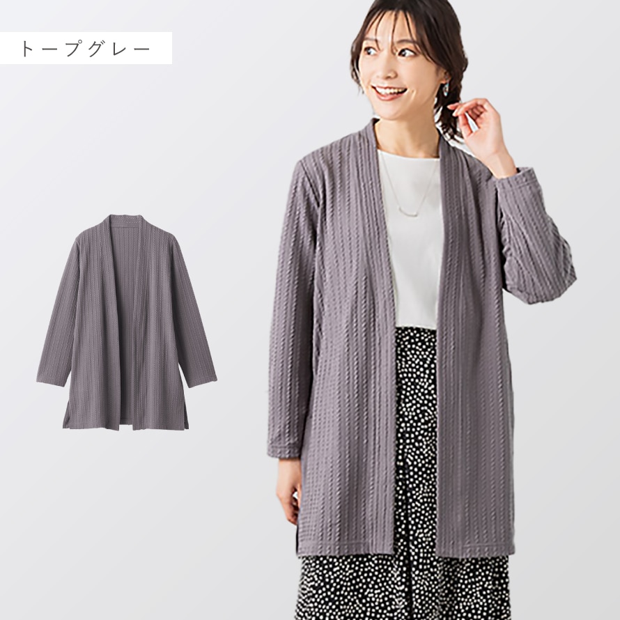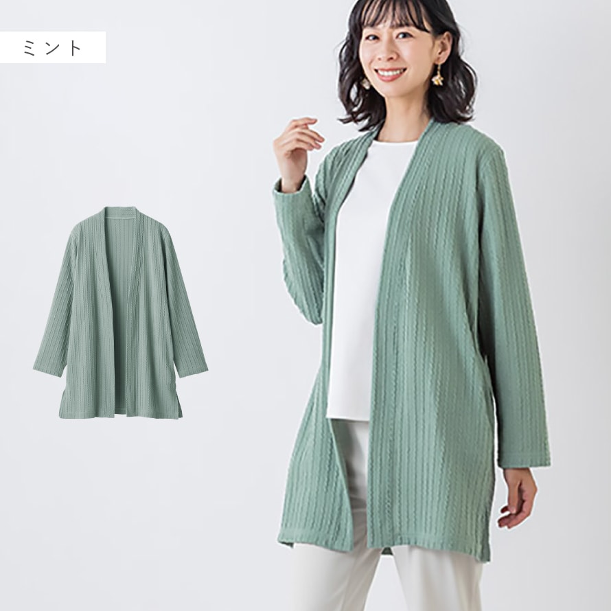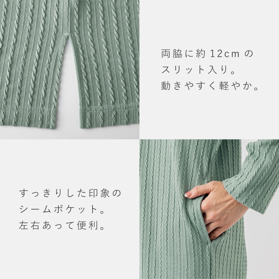 ケーブル模様がポイント。体型カバーも叶える上品カーディガン。