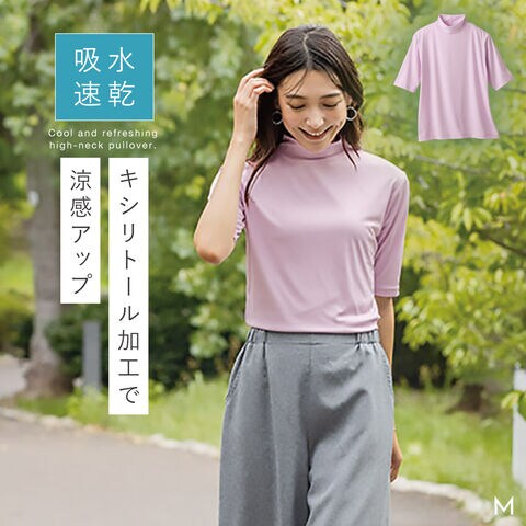 ハイネック 五分袖 吸汗速乾 接触冷感 プルオーバー tシャツ トップス 夏 涼しい UVカット 日焼け対策 涼やか仕立てのプルオーバー M L LL 大きいサイズ ゆったり ミセス シニア
