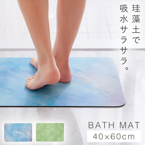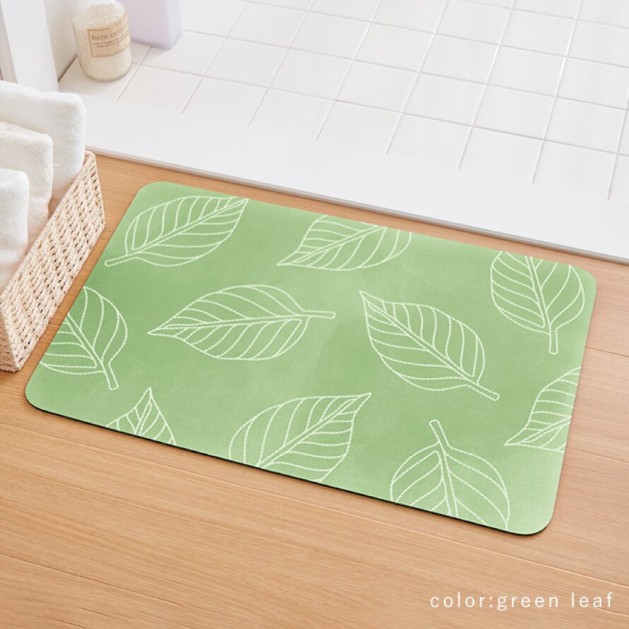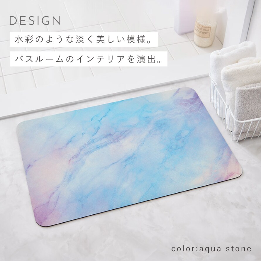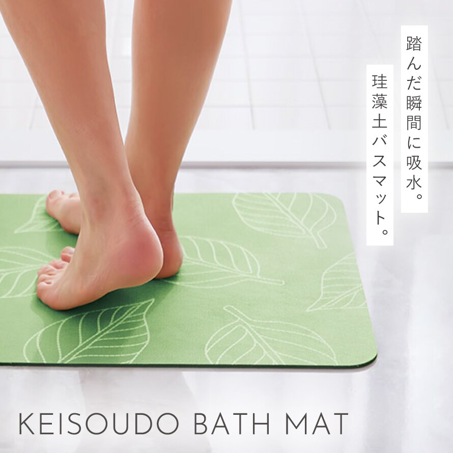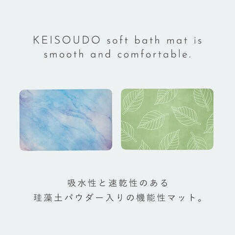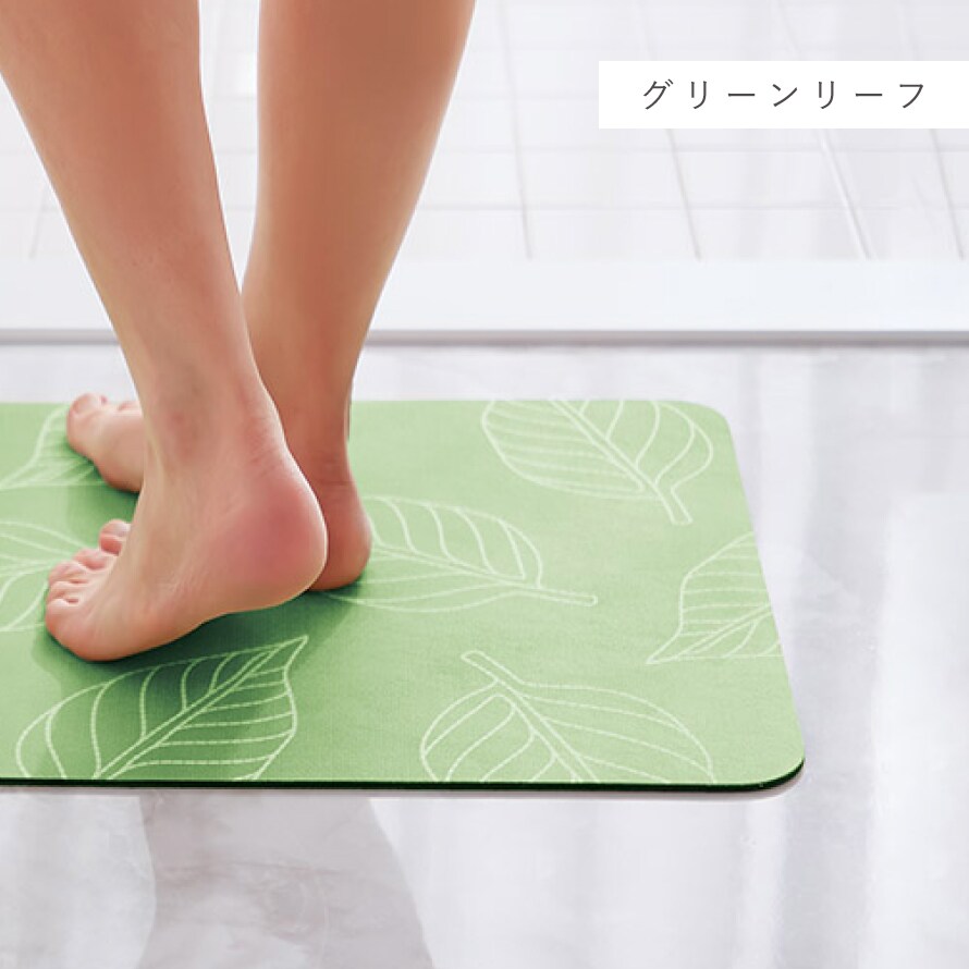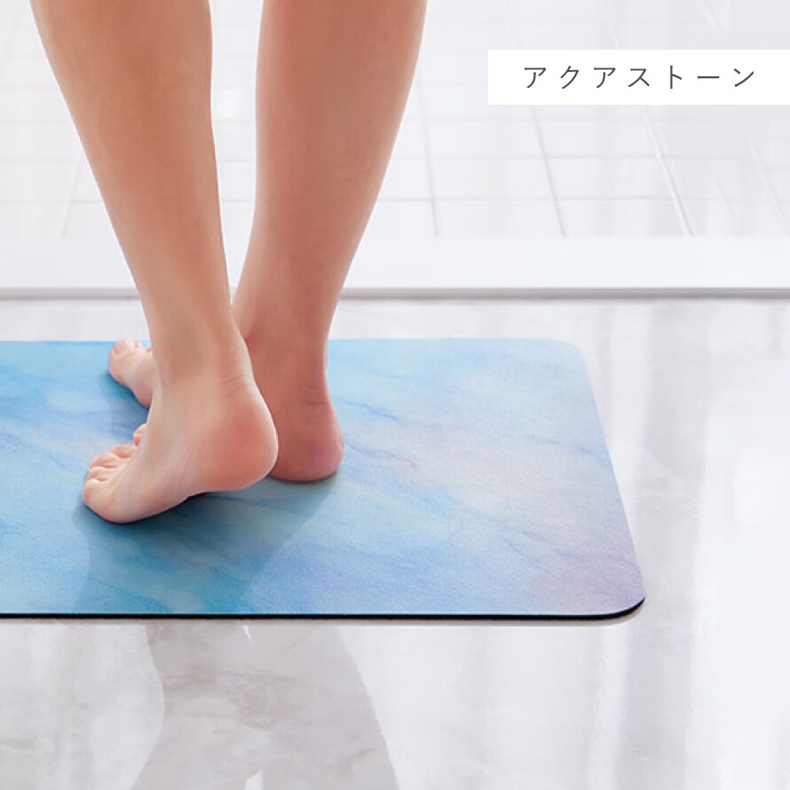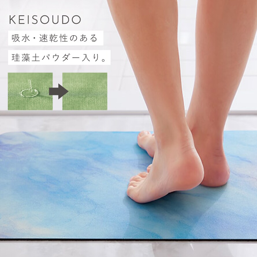 吸水性と速乾性のある珪藻土パウダー入りの機能性マット。水分を吸収するので、踏んだ瞬間に吸水し、最後にお風呂に入られる方までいつでも快適な踏み心地です。