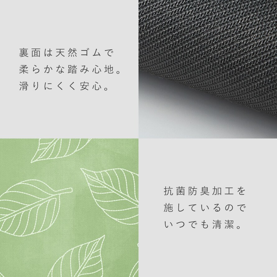 マット裏面に天然ゴムが施されており柔らかな踏み心地。また滑りにくいので安心です。