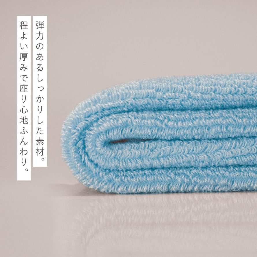表糸はアクリル100%。弾力のあるしっかりとした素材感で、ふんわりとした座り心地です。程よい厚みがあり、ひんやり感をやわらげて快適にご使用いただけます。
