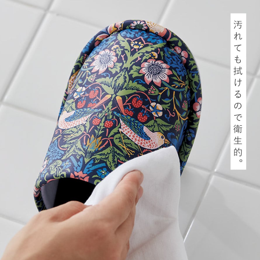 トイレスリッパ 拭ける いちご泥棒 ウィリアムモリス 北欧 おしゃれ トイレ スリッパ 合皮 サッと拭けるトイレスリッパ モリスいちご泥棒