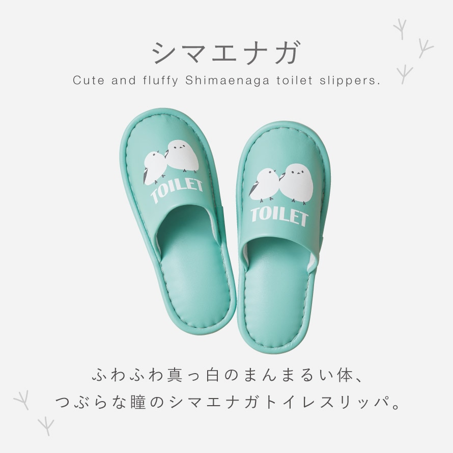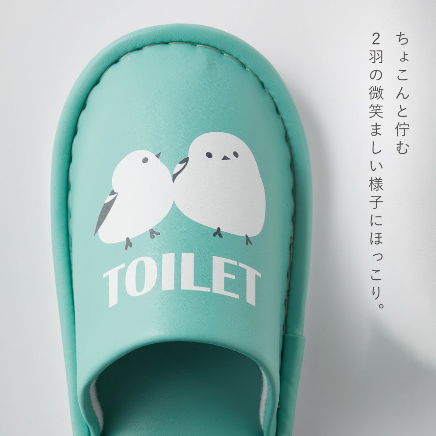 爽やかなミントグリーンにシマエナガが寄り添う可愛らしいデザインは、トイレを優しい空間に。ちょこんと佇む2羽の微笑ましい様子に思わずほっこりしてしまうトイレスリッパです。