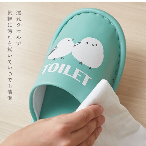 トイレスリッパ 23-27cm シマエナガ インテリア トイレ スリッパ 拭ける 合皮 かわいい サッと拭けるトイレスリッパ シマエナガ