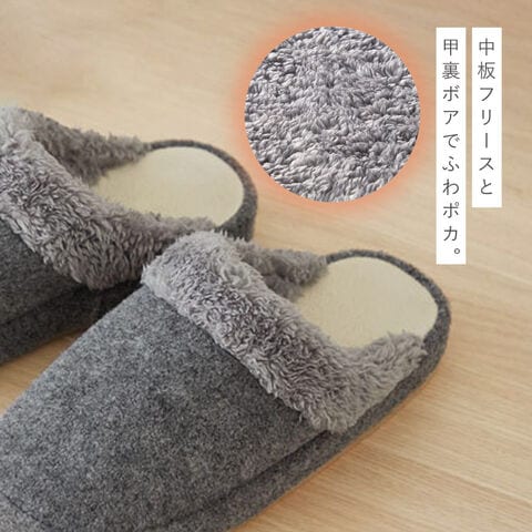 足裏に合わせた中板でフィット。甲裏までボア生地でぬくぬくのスリッパ。