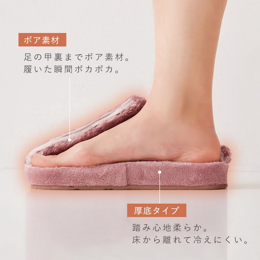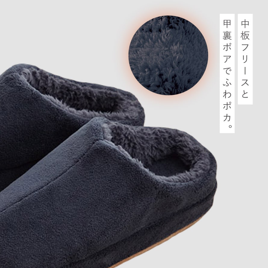 足裏に合わせた中板でフィット。甲裏までボア生地でぬくぬくのスリッパ。