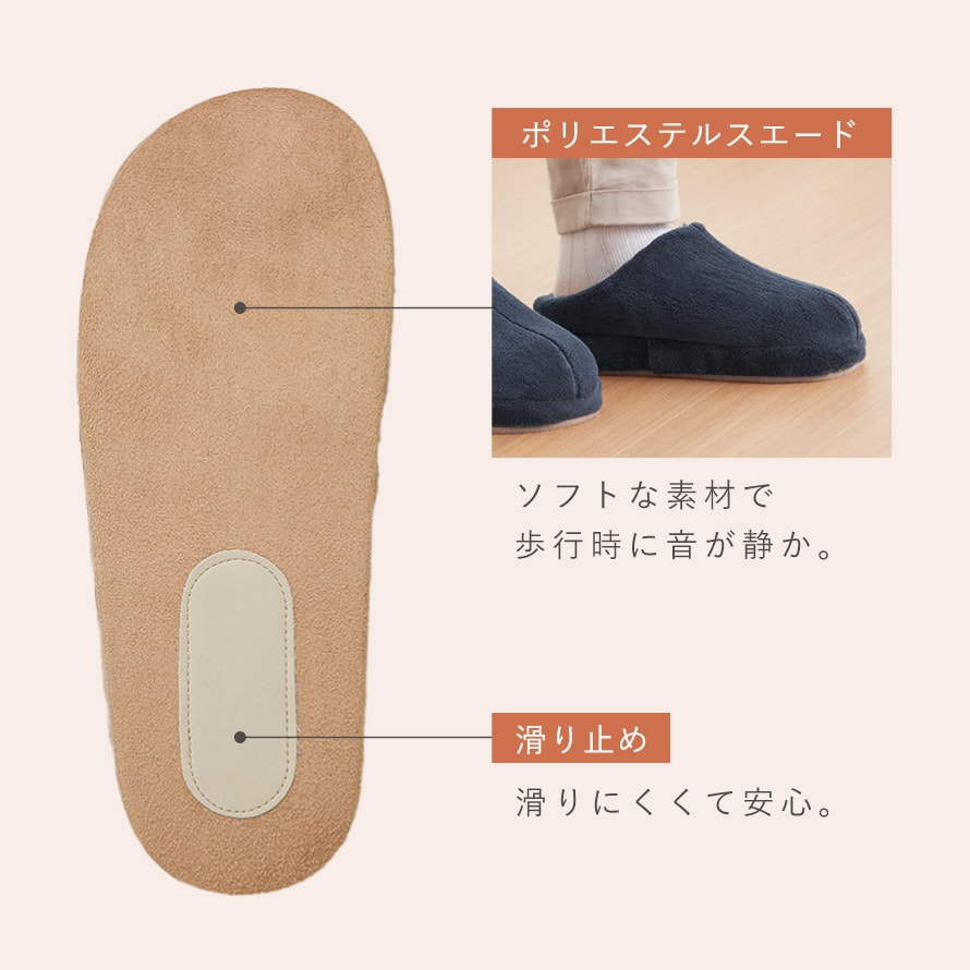 底はソフトで歩行時に音の静かなポリエステルスエード素材。