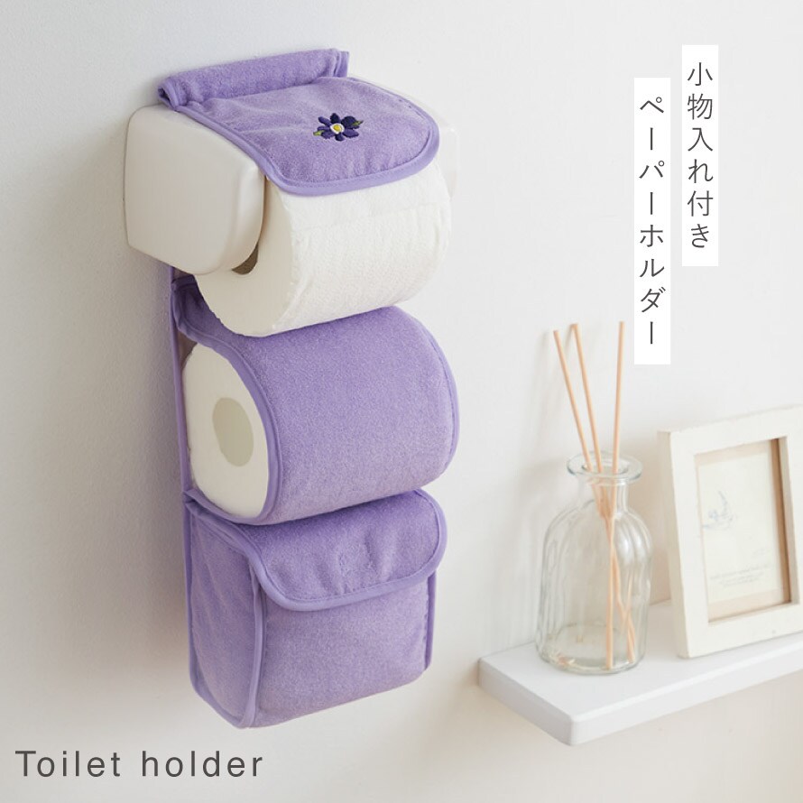 トイレットペーパーホルダーカバー おしゃれ 賃貸 洗える トイレ 紫 パープル トイレットペーパーホルダー カバー トイレットペーパーホルダーカバー ポケット付きペーパーホルダーカバー ラベンダー