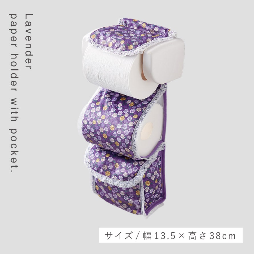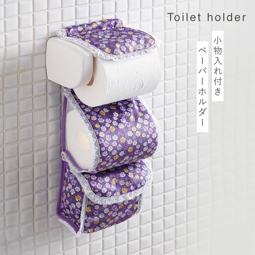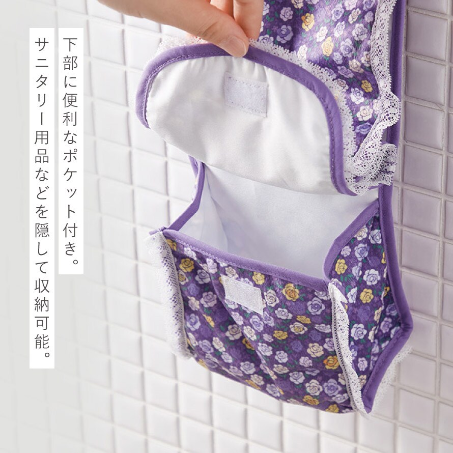 トイレットペーパーホルダーカバー 小物入れ 花柄 おしゃれ トイレットペーパー ホルダー カバー トイレ パープル 紫 フリル付きペーパーホルダーカバー ローズストッカー