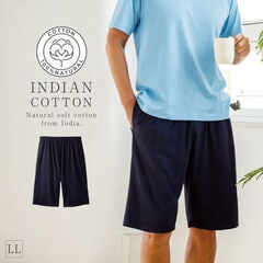 滑らかな優しい肌触り、綿100%を使用したハーフパンツ。インド綿の特徴であるシルキーな光沢、独特なぬめり感としっとりとした肌ざわりのよさが特徴です。アレルギーの方にも、インド綿100%で生地がやわらかく着心地が良い、というレビューをいただいています。