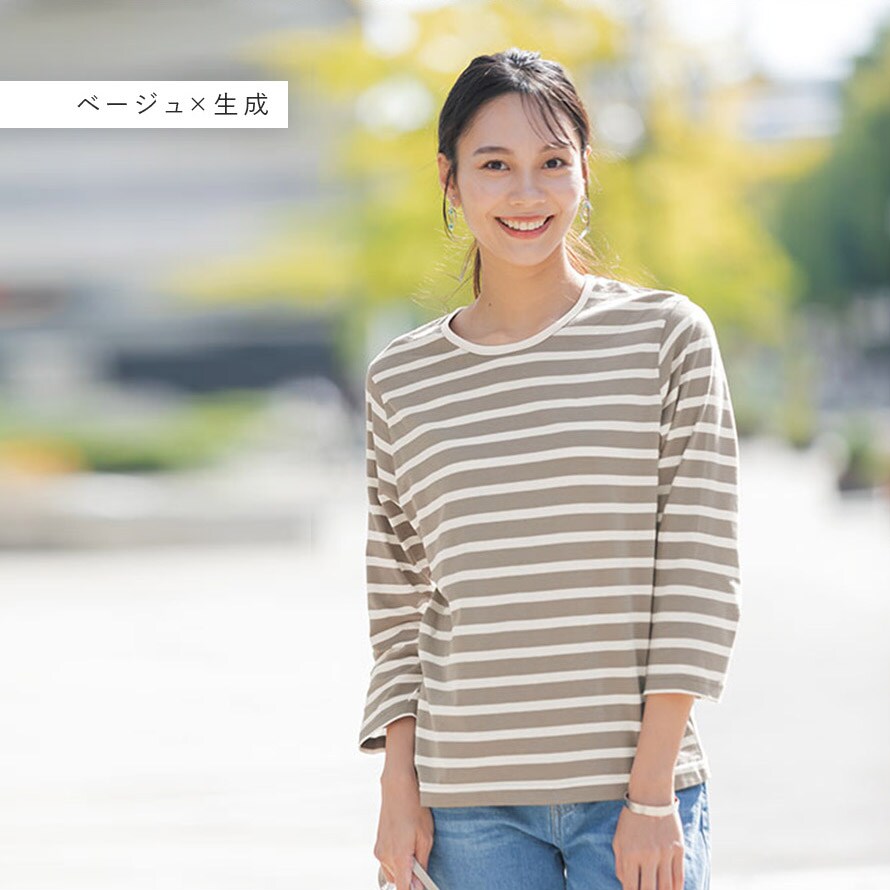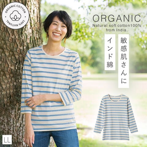 オーガニックコットン やわらかい 綿100%Tシャツ 7分袖Tシャツ 7分袖 シンプル ボーダー柄 丸首 クルーネック コットン インド綿 100% カットソー 定番 着回し サイズ展開 大きいサイズ レディース 男女兼用 LL 3L エコテックス 生成 敏感肌 丈長め オーガニックテキスタ...