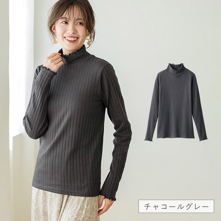伸縮性の高いリブ編みで、身体のラインに程よくフィット、縦ラインできれいに細見えします。
