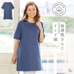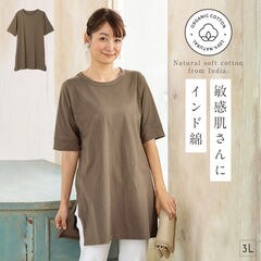 ドルマンTシャツ やわらかい オーガニックコットン 綿100% インド綿100% コットン100% 綿 インド綿 シンプル ゆったり 締め付けない ルームウェア リラックスウエア 体型カバー 30代 40代 50代 60代 肌に優しい 敏感肌 低刺激 M L LL 3L ナチュラル カジュアル...
